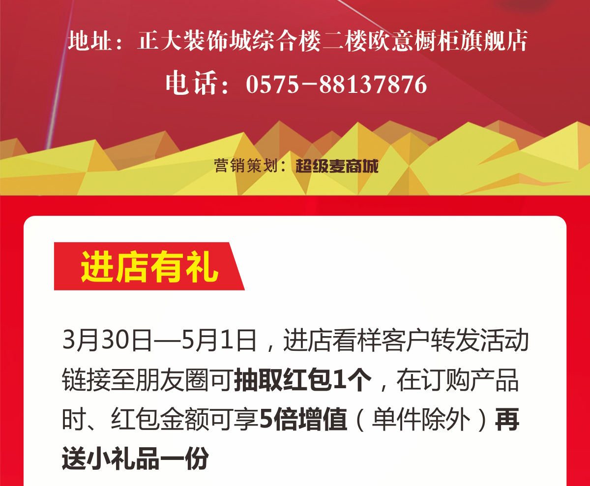 地点:绍兴正大装饰城综合楼二楼欧意橱柜旗舰店