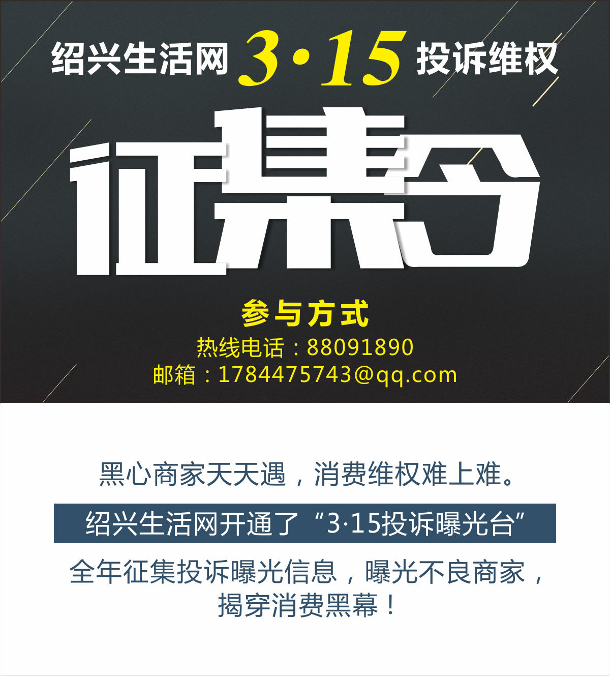 首页 / 活动 / 绍兴生活网3•15投诉征集令