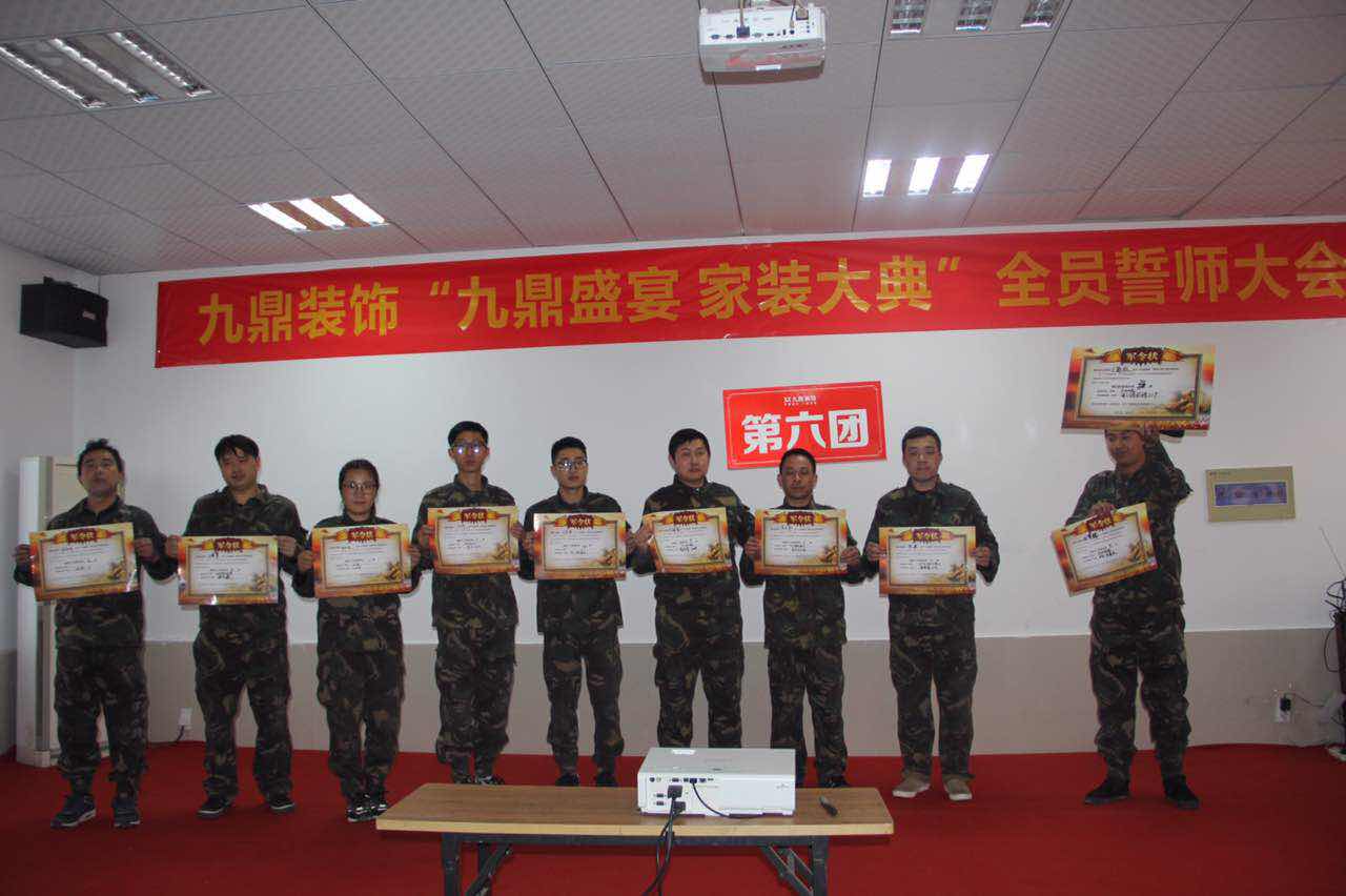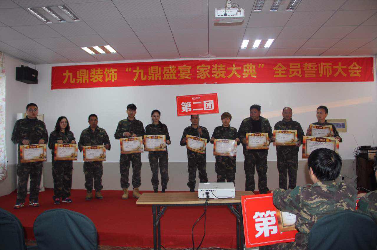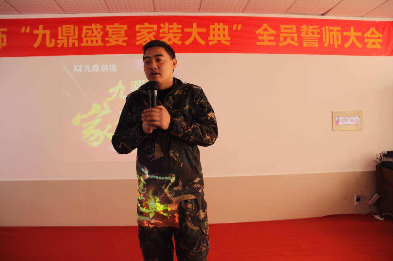 结束了一天的训练后,九鼎装饰“九鼎盛宴 家装大典”全员誓师大会正式开始。大会开始时,九鼎装饰总经理钟河北进行分享式发言。