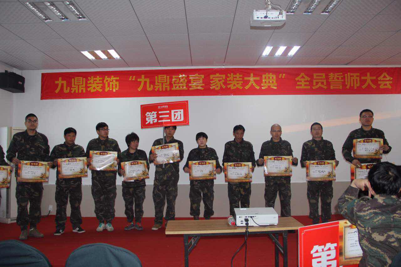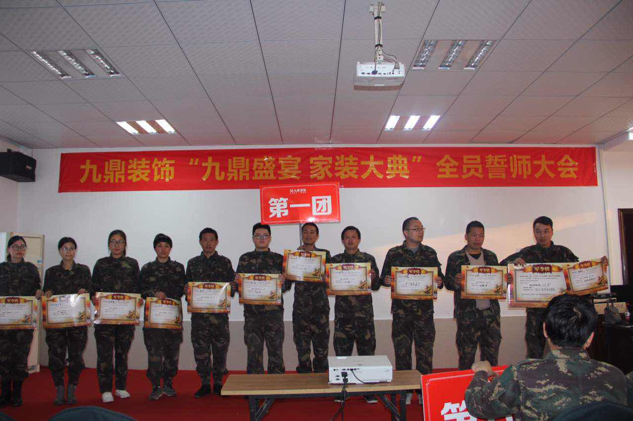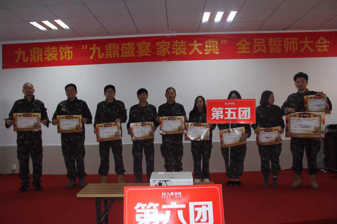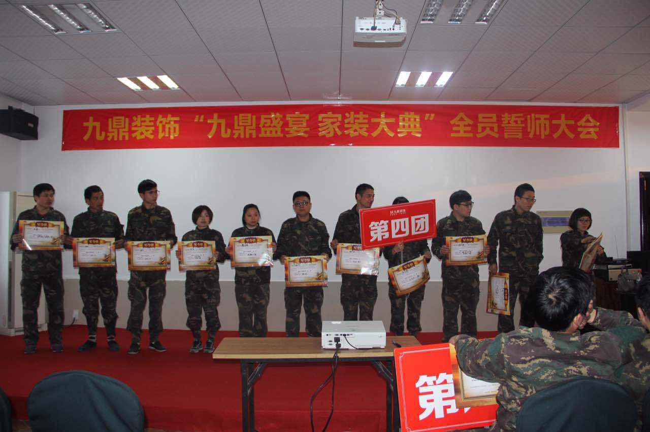 结束了一天的训练后,九鼎装饰“九鼎盛宴 家装大典”全员誓师大会正式开始。大会开始时,九鼎装饰总经理钟河北进行分享式发言。