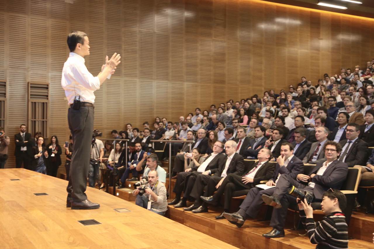 没有什么是事前准备好的,这是关于企业家精神的独特之处。所以无论你喜欢还是不喜欢,所有坐在这里的人都特别关注互联网,特别关注30岁以下的年轻人,别担心。由于工作,我们将会面临一些社会不稳定。我们很幸运能在这一代出生,我们可以看到这场革命。而且我们也是不幸的,因为可能会遇到的挑战。我在世界各地旅行,跟小企业和企业家交谈。我谈到,这是我们的时代。当你使用互联网,你没有障碍。我所了解的是,说服一个成功的人很难。说服成功的人几乎是不可能的。他们会说,我已经这样做了30年,为什么你认为你比我更好。所以试图说服那些(不成功的人),与那些明天想成功的人一起工作。阿里巴巴的秘密之一,在于18年前,当我们做电子商务时,我们从未试图与大公司合作,我们从未试图与成功的人一起工作。我们大部分时间都在和15岁、18岁的人对话,然后10年后我们服务的对象变成28岁、30岁。所以你需要有耐心。如果你有一个美好的梦想,你应该有耐心。所以现在我会回答你的任何问题。