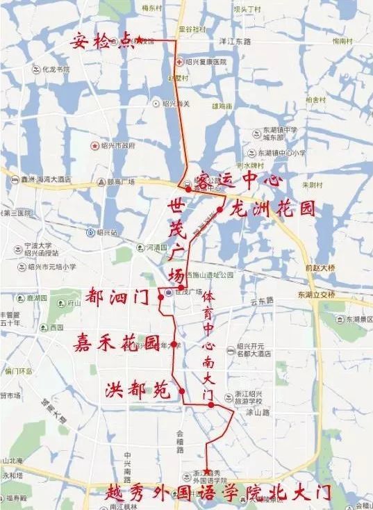 停靠站点:越秀外国语学院北门、体育中心南大门(新道可道酒店、米兰风尚假日酒店)、洪都苑、嘉禾花园、都泗门、世茂广场(绍兴世茂皇冠假日酒店、开元.曼居酒店、绍兴君品时尚酒店)、龙洲花园、客运中心(中金豪生酒店、维也纳酒店、中成柏悦酒店)。