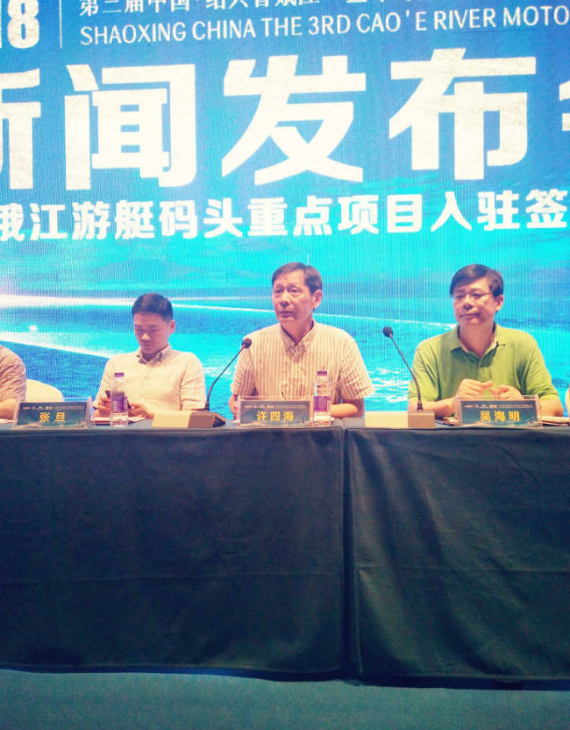 会中宣布,2018第三届中国绍兴曹娥江国际摩托艇公开赛将于10月13日-15日在绍兴曹娥江大闸景区隆重举行,赛事也将由原来专业组再度升级,增加企业业余组的比赛,推动赛事进入全民化阶段。并提前定于8月、9月分别在柯桥瓜渚湖、市区迪荡湖进行业余组的预选赛,同时融入摩托艇水上运动的文化和表演,全面推向大众,让全民有更多机会了解赛事文化。