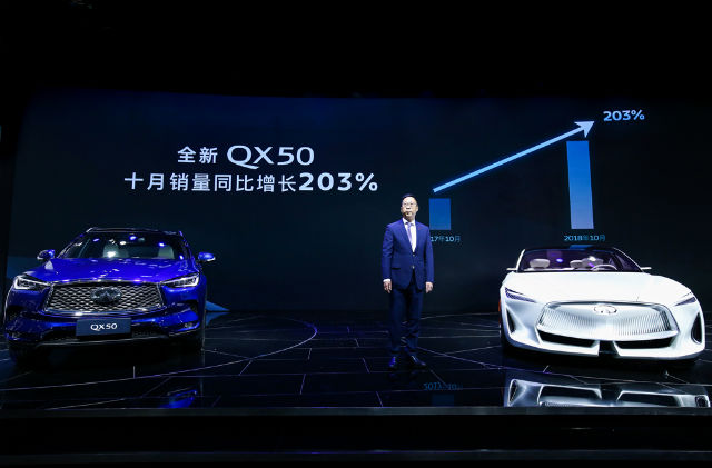 得益于产品矩阵的高价值与品牌形象的再进化,东风英菲尼迪创造历史最佳10月销量,整体销量为4,469台,同比增长7%。其中,全新QX50 10月销售1,872台,同比劲增203%,自6月上市以来延续增长势头,进一步彰显其在细分市场的产品实力。