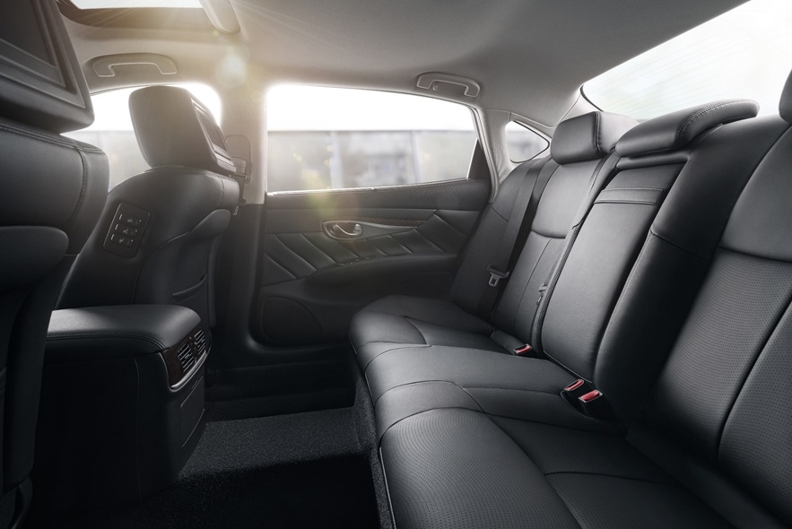 凭借3050mm的超长轴距,Q70L 19年型拥有宽敞惬意的后排空间,乘坐舒适性同级领先。通过采用密封吸音材料与高刚度轮毂,配合主动降噪技术,全车打造出高度静谧的私享空间。内饰方面,整车座椅采用奢华真皮包裹,精选头层小牛皮营造出无与伦比的细腻质感;中央扶手及车门扶手处则甄选触感柔软的SOFILEZ材质,赋予驾乘者愉悦而贴心的感官体验;方向盘、饰板等采用手工缝制、包裹,以传统手工工艺精心塑造豪华细节。