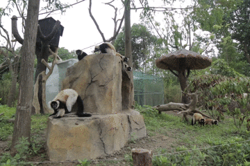 园区居住着大熊猫、金丝猴、金毛羚牛