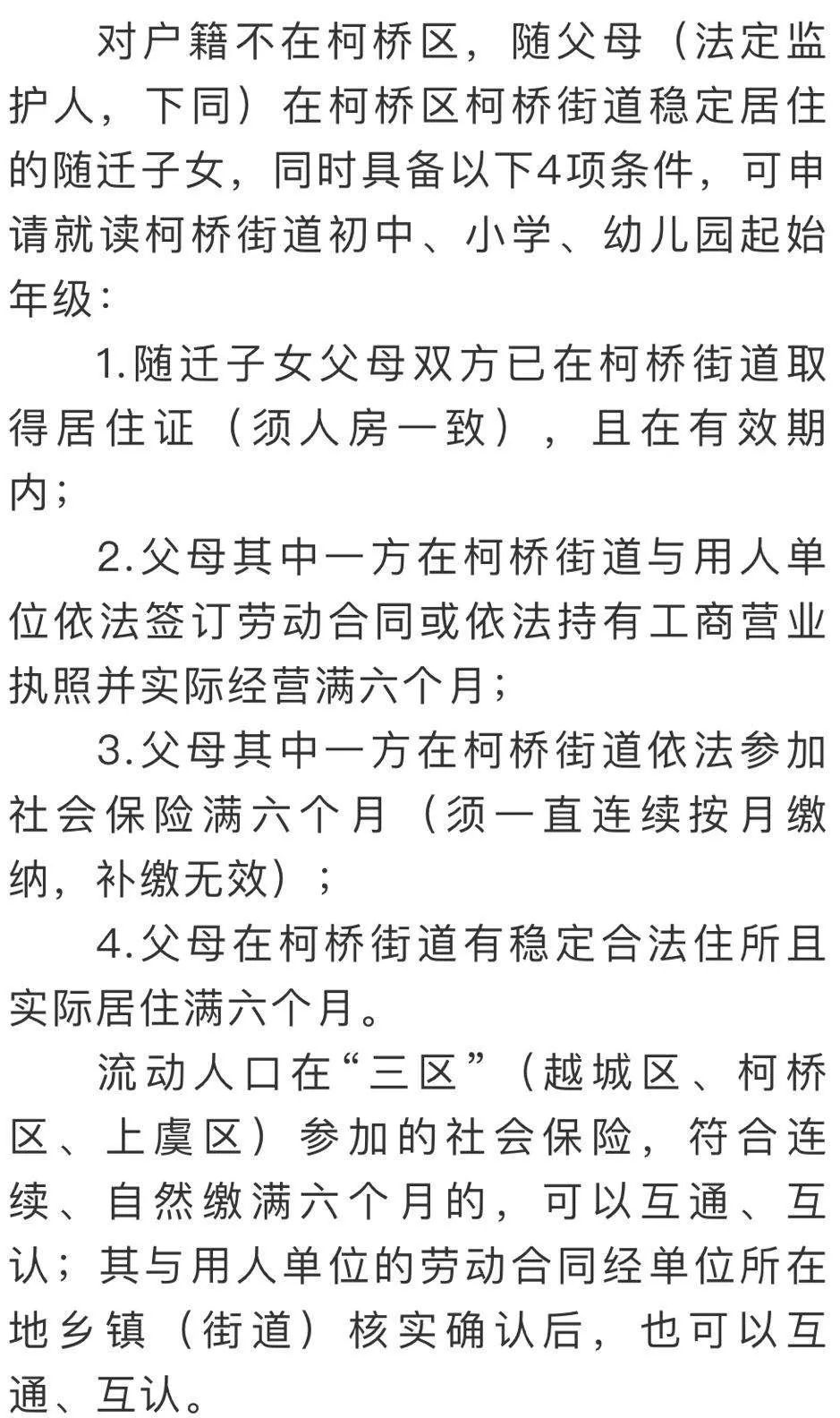 根据柯桥区人民政府办公室《关于进一步做好流动人口随迁子女入学工作的若干意见》(绍柯政办发〔2017〕23号)。
