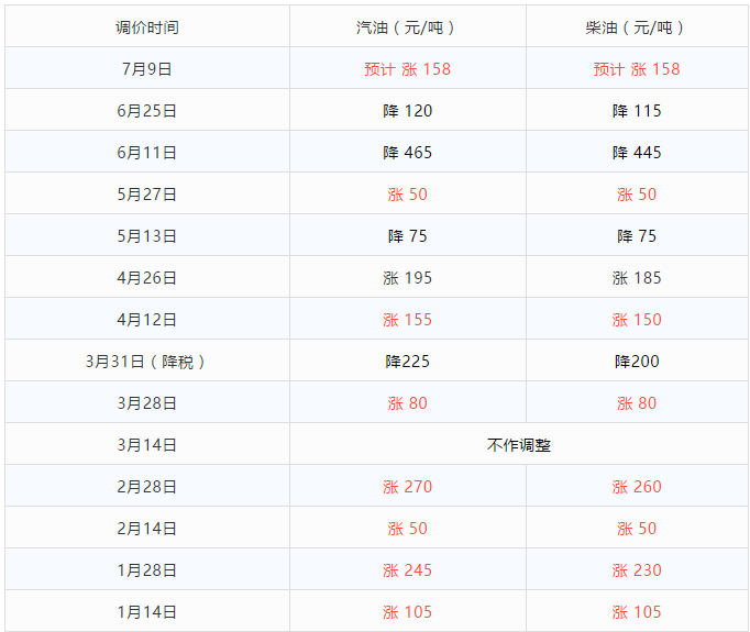 本周二晚上(7月9日24时)迎来本年度油价“第9次”上涨,油价上涨幅度已累积达158元/吨,折算后每升涨幅接近1毛5!朋友们,距离油价上涨还有1天,要提前加油了哦!前8个工作日,预测上调幅度158元/吨,折算为上调0.12-0.14元/升,预测加满一箱油将多花6元左右,调价时间为:7月9日24时!2019年来国内油价已进行13次调整,其中“8涨,4降,1搁浅”的涨多跌少情况!涨跌互抵后,汽油共上涨了265元/吨,柴油共上涨了275元/吨。
