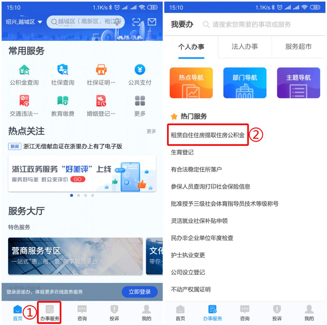 ①电脑办理,可以选择“浙江政务服务网”,点击“个人服务”便能看到“公积金”模块,办理公积金提取业务;