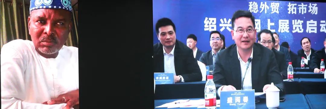 盛阅春市长还通过视频连线的方式,与来自境外的两位云上采购商代表尼日利亚奥迪亚有限公司总经理德里爱里弥先生和伍丁时尚有限公司销售总监蒂娜埃洛伊女士以及我市云上参展商代表绍兴市圣峰进出口有限公司总经理胡海燕进行了在线对话。