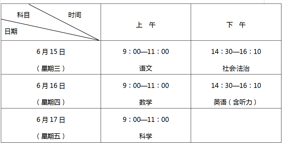 3.请仔细核实确认考试时间、地点和科目,英语科目开考后先播放英语听力试题,开考前十五分钟(14点15分)后不得入场。其他科目开考15分钟后不准入场。