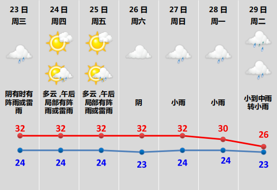 明天最低气温:24~26℃