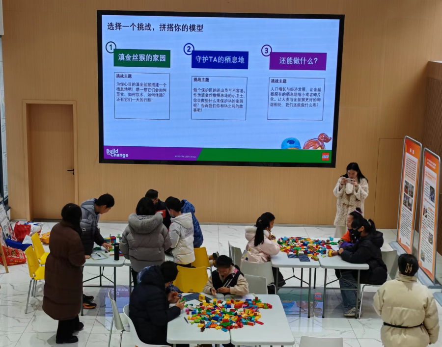 本次活动首先借助PPT和短片,让队员们更加深入了解了滇金丝猴的种类、分布、生活环境和习性等相关知识背景,以此让他们感受到滇金丝猴群体目前所面临的生存危机,同时引导他们思考可以为保护滇金丝猴做些什么。随后,队员们分成3个小组,每组从“滇金丝猴的家园”、“守护它的栖息地”和“还能做什么?”三个主题中各挑选一个主题,并结合主题拼搭乐高。各组同学们展开积极讨论,分别为金丝猴搭建出了饮水、食物和休憩地的新家园和栖息地,并在搭建完成后讲述了拼搭过程中的思路和想法。