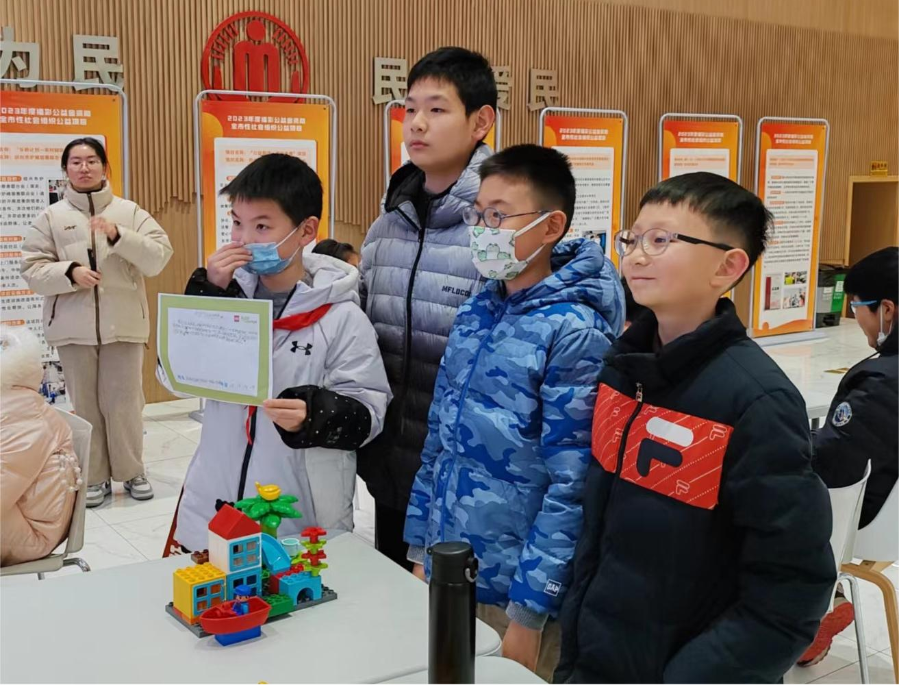 2月5日上午,浙江省绍兴市北海小学新河弄校区六(1)班新势力小队的队员们参加了由绍兴市慈善基地组织的寒期研学活动:小小创变家——金丝猴主题系列拼搭活动。
