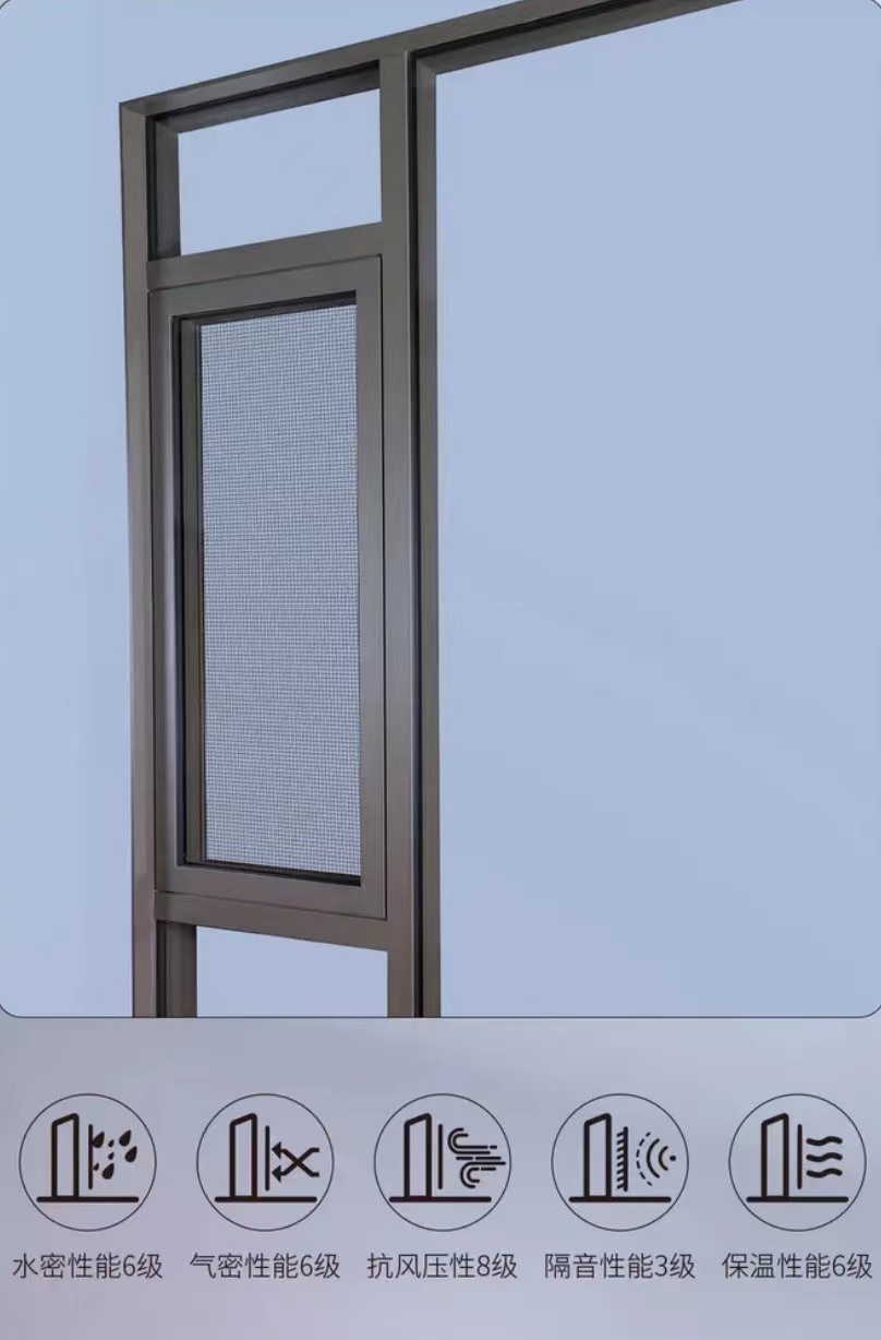 窗扇与固定扇外侧相平,防撬防盗,减小风雨冲击面,美观实用。五金和密封教条隐藏在型材内侧,密封性好,防风、防水性能强。