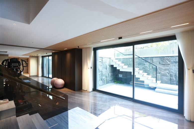 别墅的负一层,是一整片休闲区,观影、品茗、尝酒、健身,自在乐活,沉浸其中。