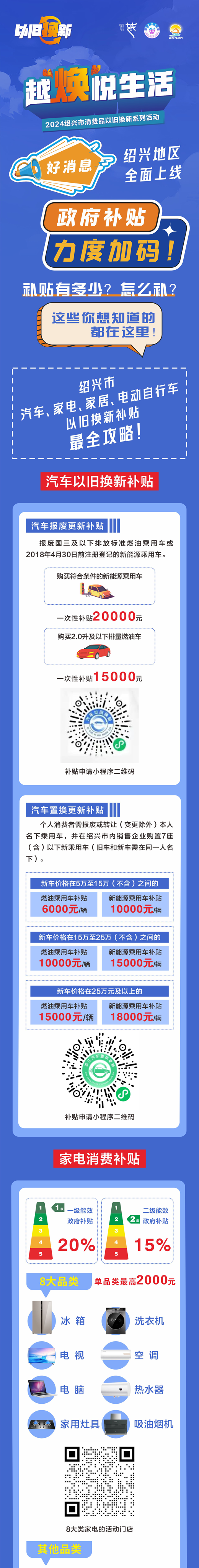 绍兴市汽车、家电、智能家居、电动自行车以旧换新补贴最全攻略!