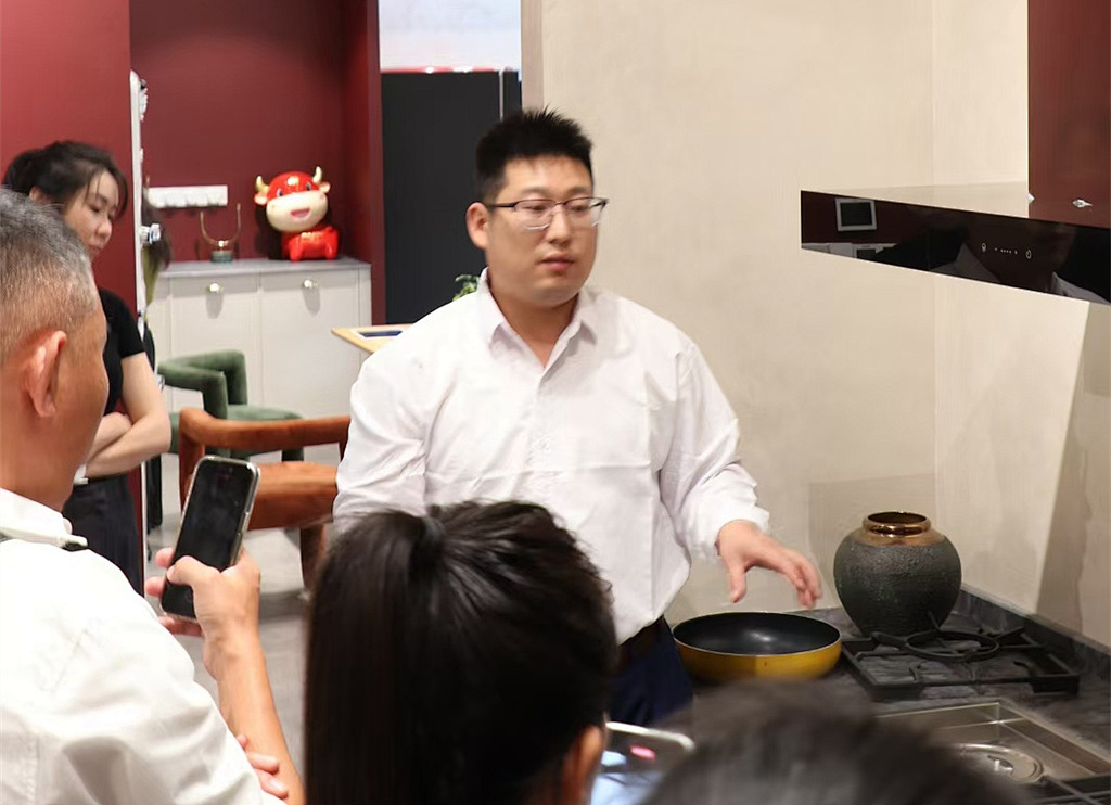 技术部总监俞水荣专业化地讲解订单落地安装流程、现场交底等服务细节,吸引大家专心倾听并认真做好笔记。