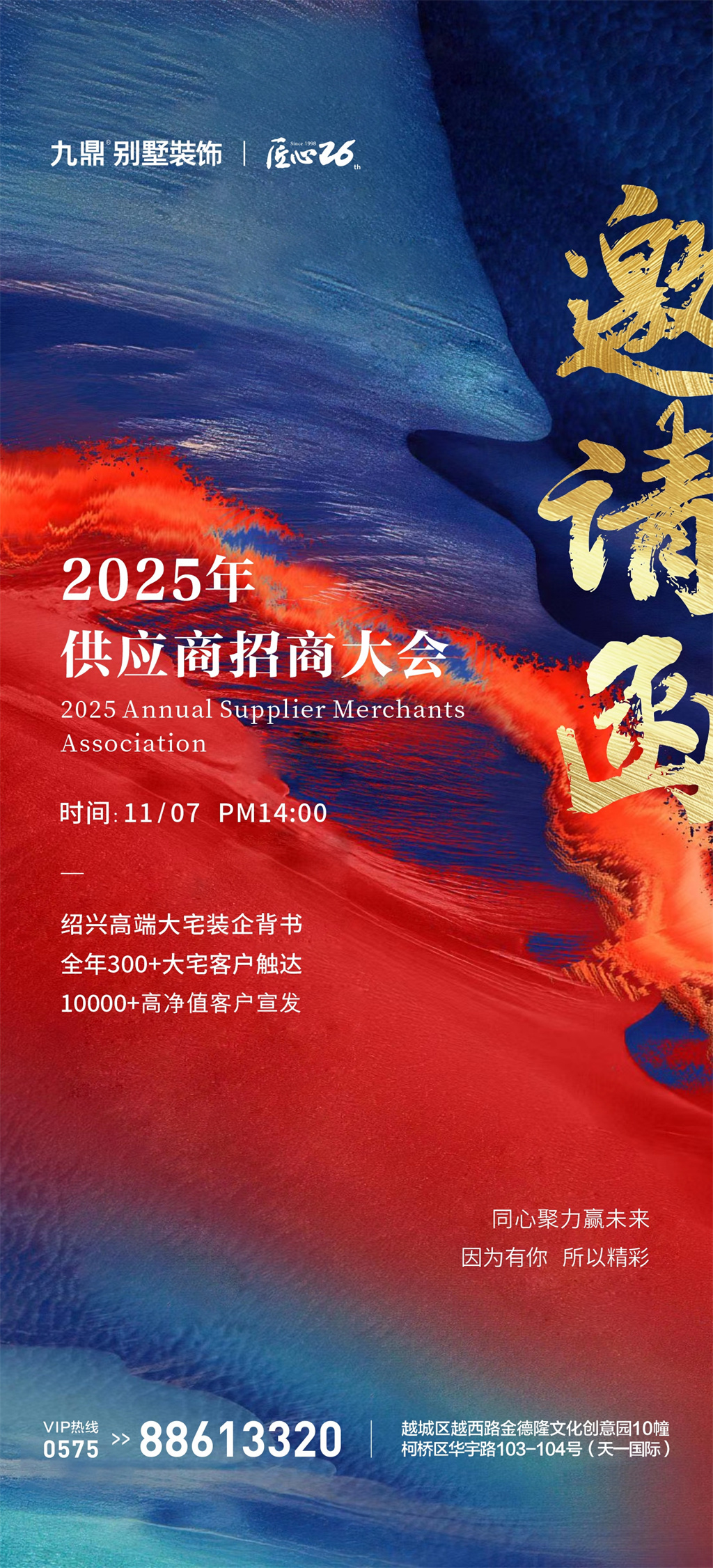 九鼎别墅装饰自成立以来,始终秉持着“口碑相传,永续经营”的理念,致力于为客户打造高端、舒适、个性化的别墅生活空间。在过去的 12 年里,我们与众多优秀的供应商携手合作,共同成长,取得了令人瞩目的成绩。如今,为了适应市场的发展和客户的需求,我们制定了 2025 年度供应商招商整体规划方案,期待与更多有实力、有品质、有创新精神的供应商建立长期稳定的合作关系,共同开创更加美好的未来。