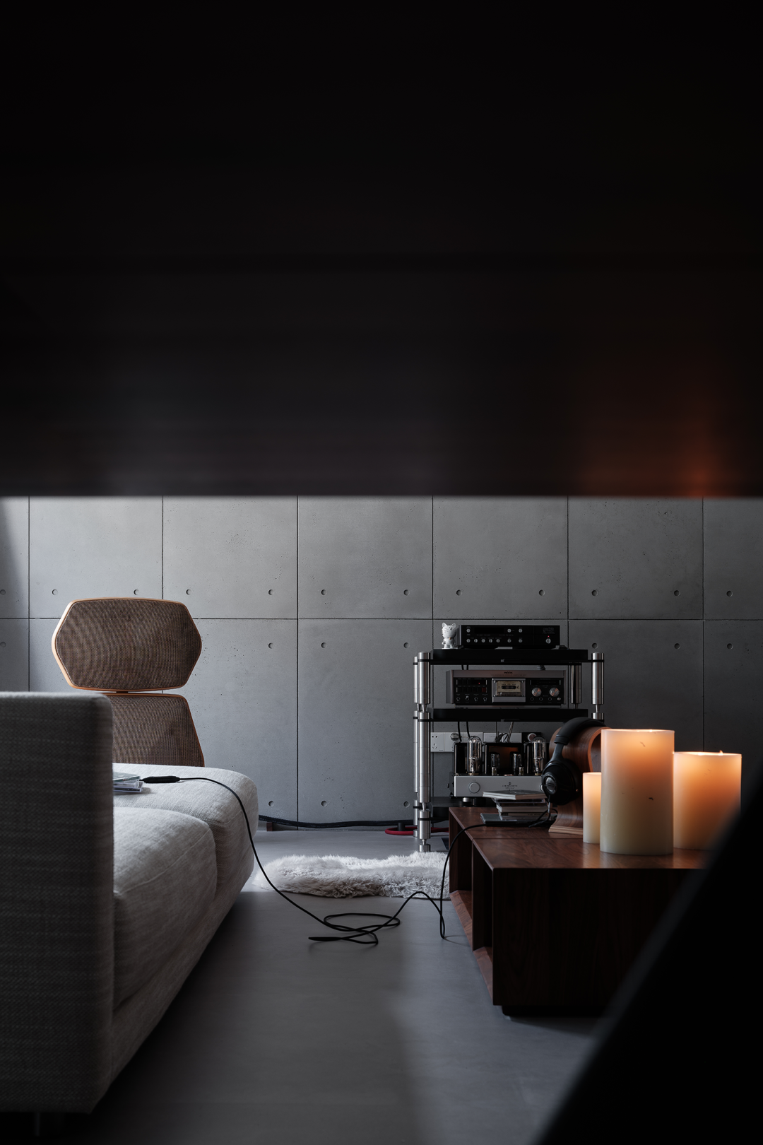 SoundKaos Libération音箱云淡风轻亦高格,写就骨灰级音乐发烧友不羁的丰满灵魂。空间早已超越了视觉与功能维度的属性,静谧的克制与纯粹的自由,指向当代士大夫的精神隐喻。居者的强烈个人精神烙印,集结为空间的核心灵魂。清水混凝土的冷峻诗意美学,宁静而悠远的表现主义收藏画,寥寥几笔热爱的符号,便勾勒出可识别的腔调。形的表征,回归最本真的松弛基调;意的精神,却传递沉默之下的热烈张力。