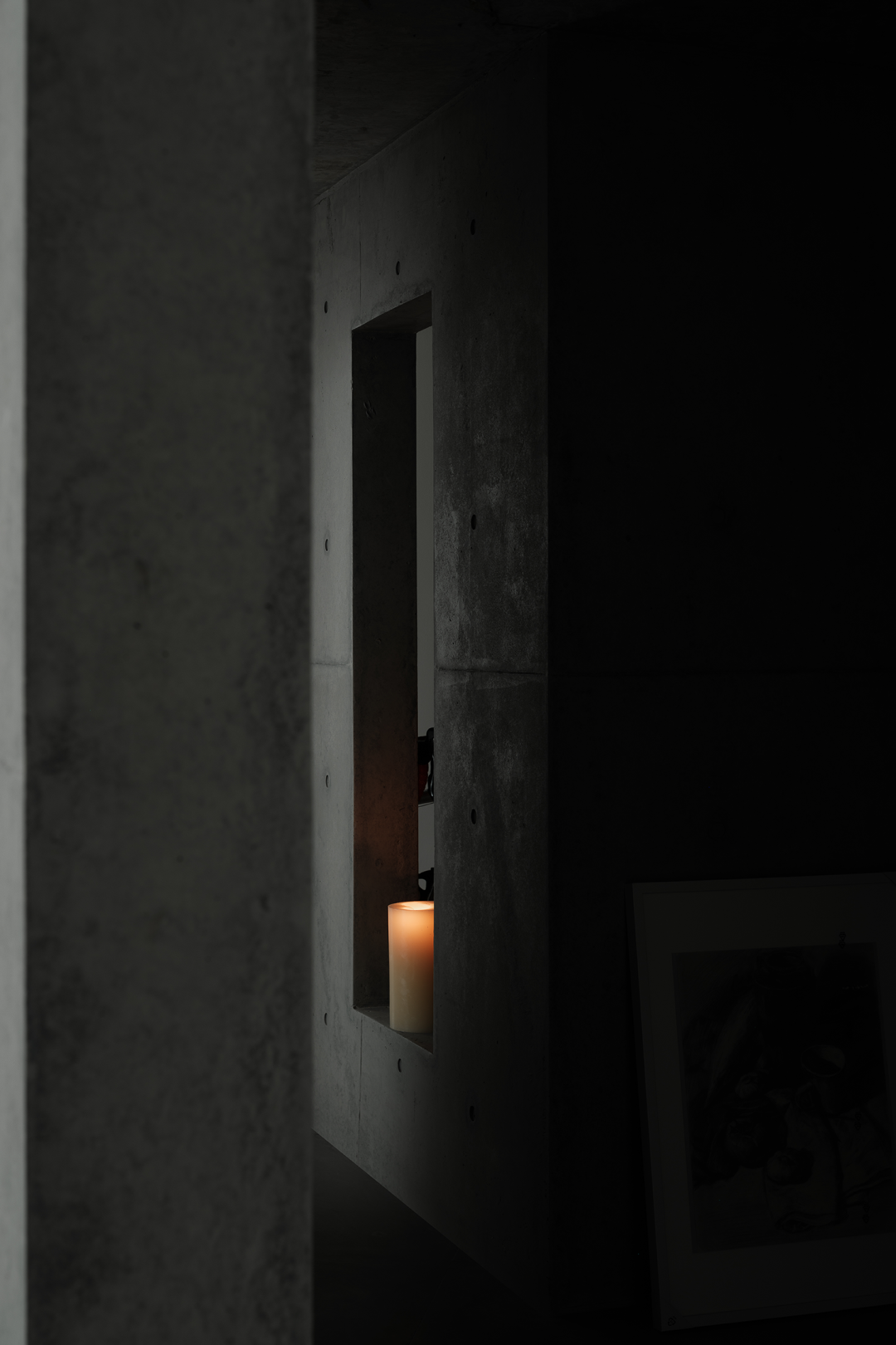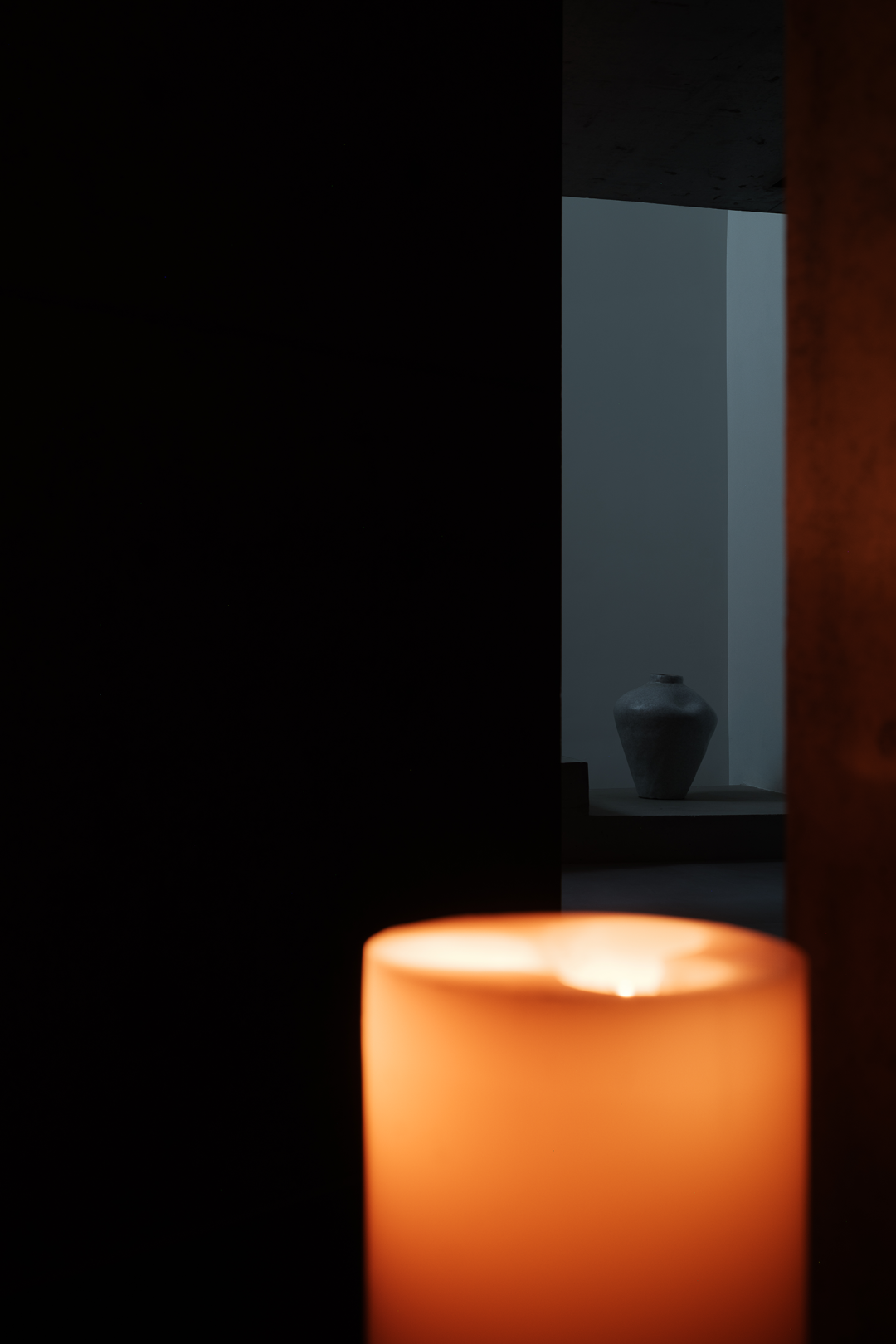 如果说清水混凝土的野生肌理主导着克制美学,那光这一“精神材料”的介入,则点燃了空间灵魂,完成了更具东方意向之美的诗意转译。光的通道或穿越缝隙,或投射切面,或勾勒形体,或晕染框景,明暗变奏间柔和了粗粝的质感,由现实的本真走向更具冥想意向的空寂游离。清水混凝土持续以极简肌理掌控空间基调,昭示着居者对静谧诗意栖居的信仰。项目特邀安藤忠雄杭州落地团队担纲施工技术指导,严控细节标准,精准的接缝与独特的肌理,将工匠精神的探微与艺术美学的风情,共凝为诗意东方的场域精神。