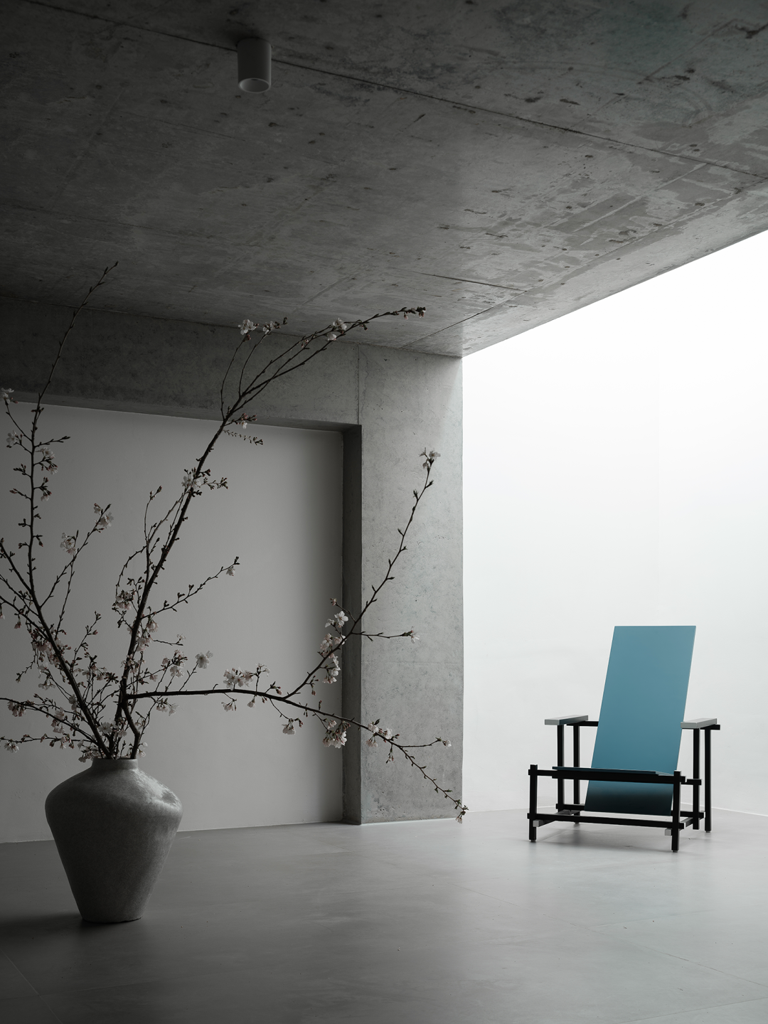 引入半面流动天光,采撷一支疏影横斜,加一分红蓝椅的艺术天分,生命的流动与体悟由此而起,天地万象皆来相就。