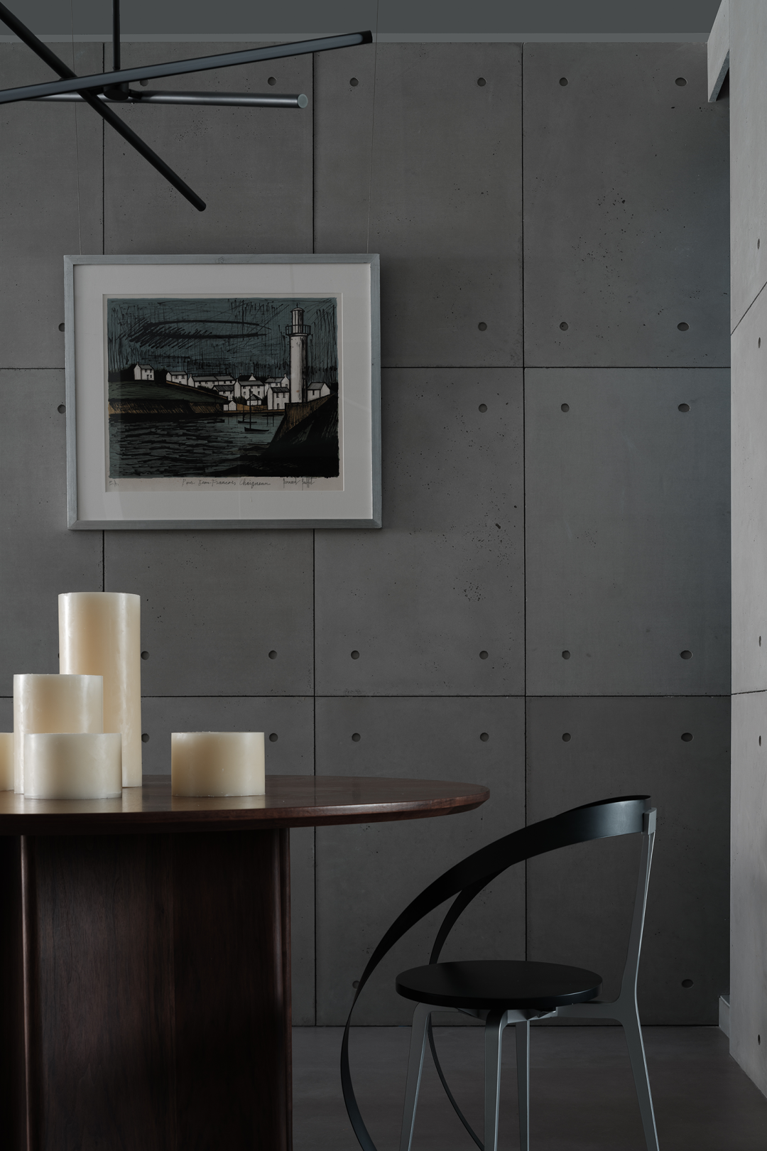 清水混凝土的材质贯穿,颠覆传统住宅的装饰风格化。设计隐去传统符号,以当代手法只做空间架构,于室内造园,极简的静谧克制,留白的意境悠远,让渡于居住的精神性觉醒。东方韵生,诗意渐浓……曲折致深远,无形亦有园。清水混凝土为骨作纯粹体块,源于天然层高的解决方案,更生发自居者对于安藤忠雄式建筑诗意的精神信仰。设计消解以符号写形的桎梏,用当代笔触重构园林“虚实相生”境,构筑起静默的流动诗行。自然天光于室内多面叙事,明灭变幻中藏幽于动线上,联动起视线的 “曲径通幽” 体验。光影斑驳时,留白处若泼墨山水,园林意向自现。