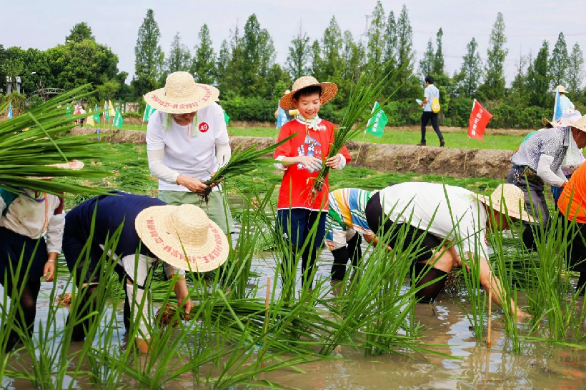 农耕板块的亲子插秧趣味赛,成为当天最具温度的场景。生态农业园的水田里,来自鲁迅小学人民路校区三(7)班的学生们、市特促会、越城区网联会、今日越城小记者等亲子家庭和成人选手共计200多人参加插秧体验比赛,挽起裤脚、踏入泥田,在赛道上体验插秧劳作。而王家葑村葡萄生态园也以折扣促销,不少选手在体验完农耕乐趣后,纷纷走进葡萄园,亲手摘下新鲜饱满的葡萄,既享受了采摘的乐趣,也为共富助力。