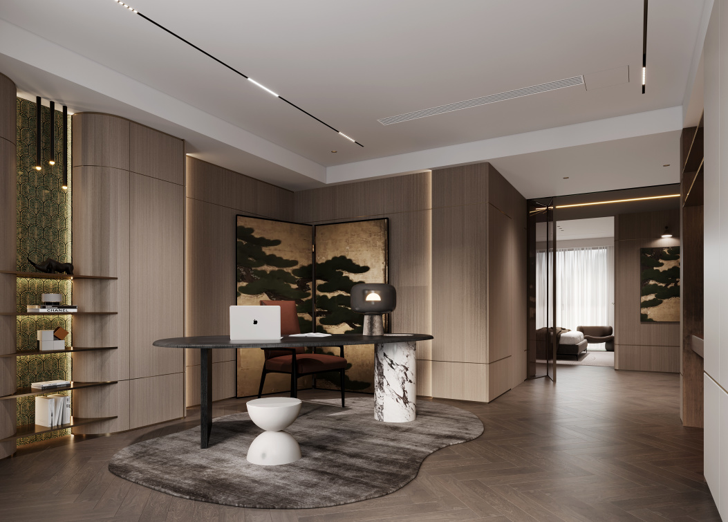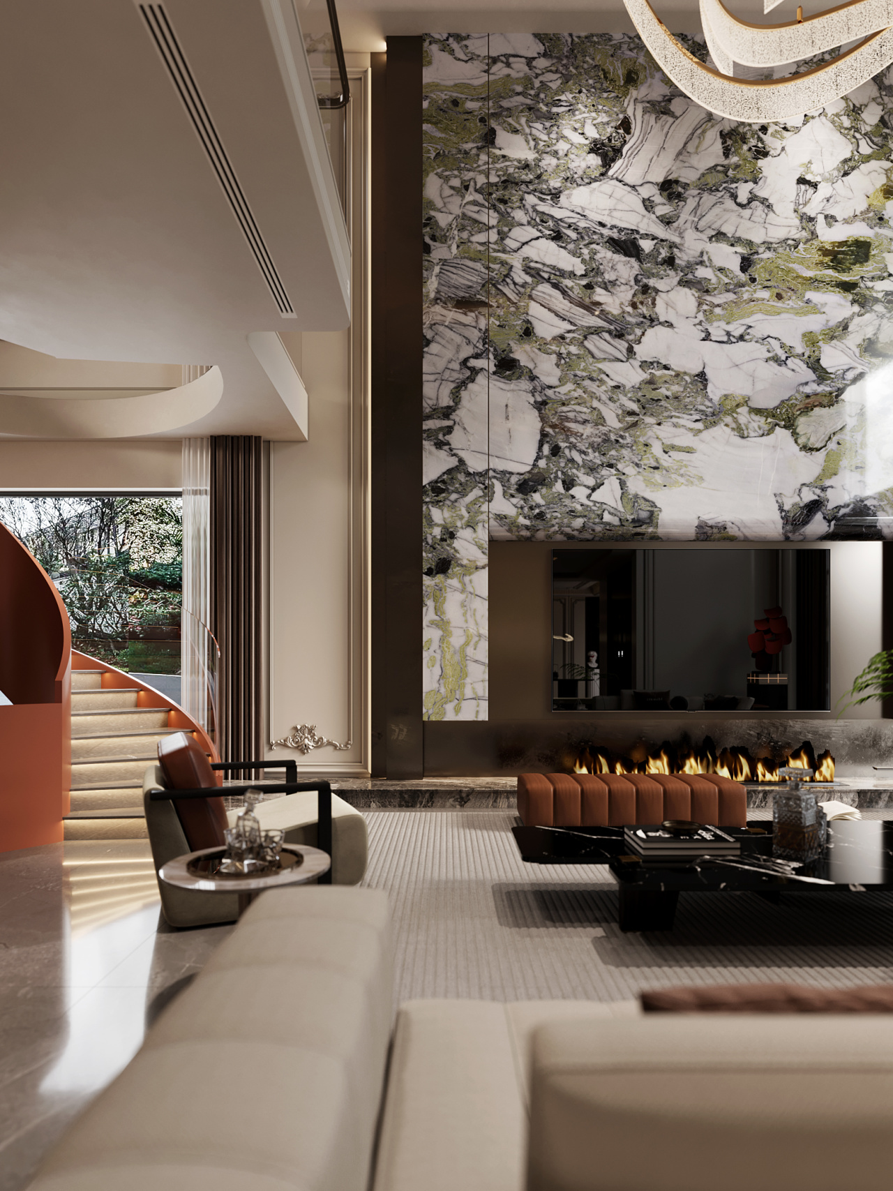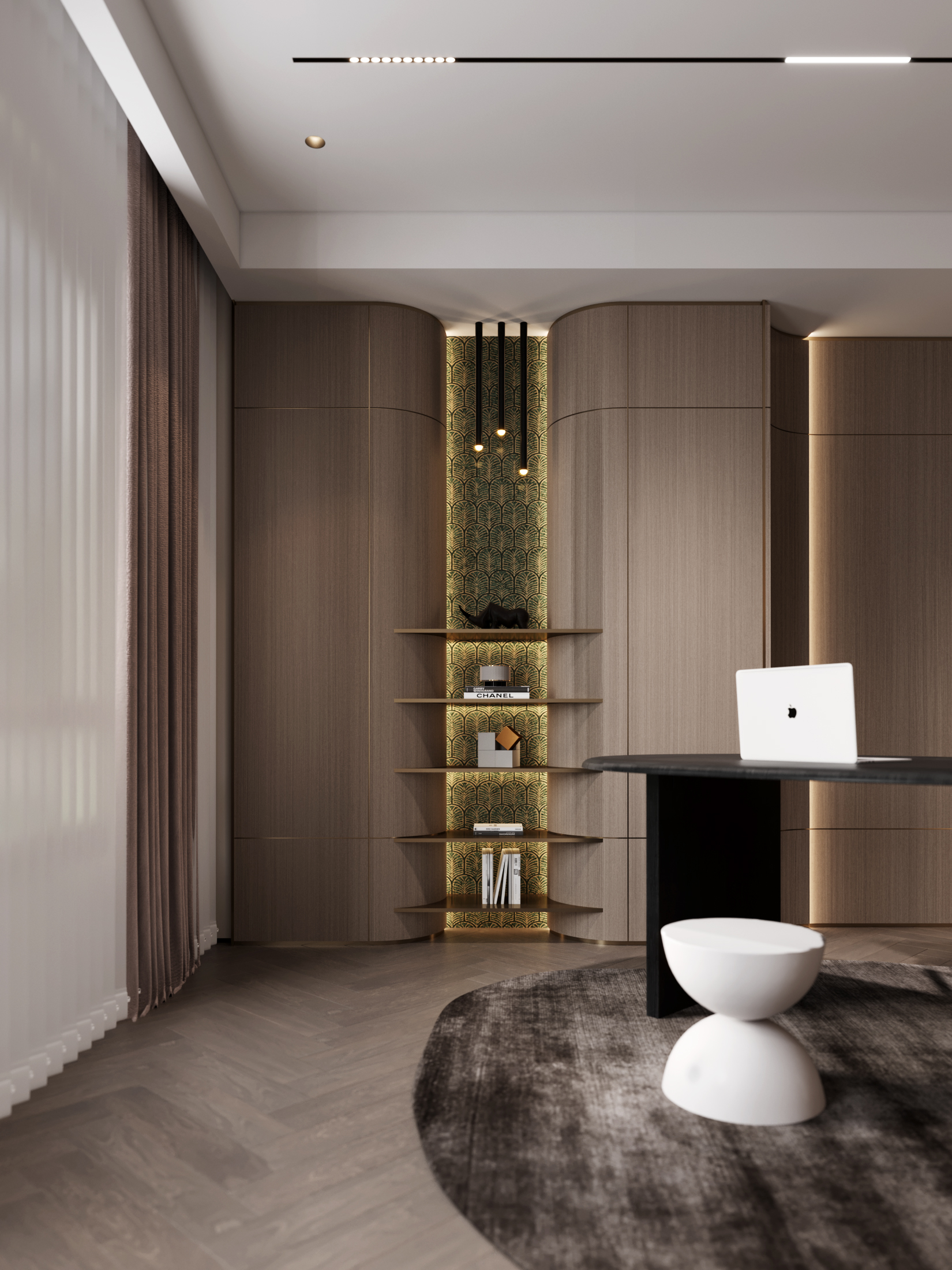 而在美学营造方面,张鑫伟更是独具匠心。她擅长运用色彩的和谐搭配,巧妙营造出空间的独特氛围与情感基调;精心甄选材质,借由质感的巧妙碰撞,赋予空间别具一格的魅力;灵活运用光影变化,为空间增添一份温柔与灵动。她的设计,让美学不再是停留在图纸上的抽象概念,而是真切地融入业主的三餐四季,成为日常可感的美好。她所追求的,绝非仅仅是一座“好看的房子”,而是一个能让业主全身心放松、尽情释放情绪的“有温度的家”。