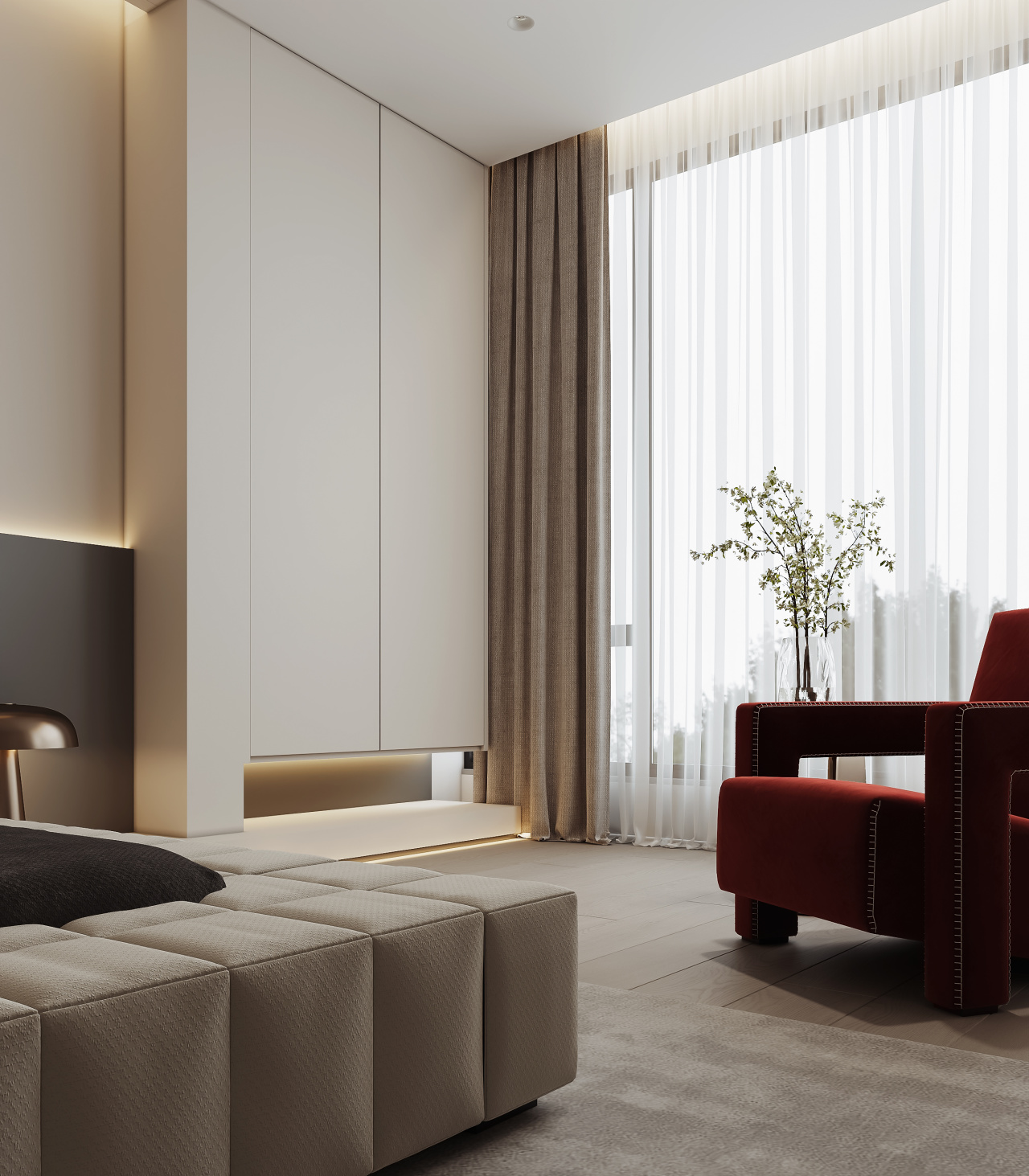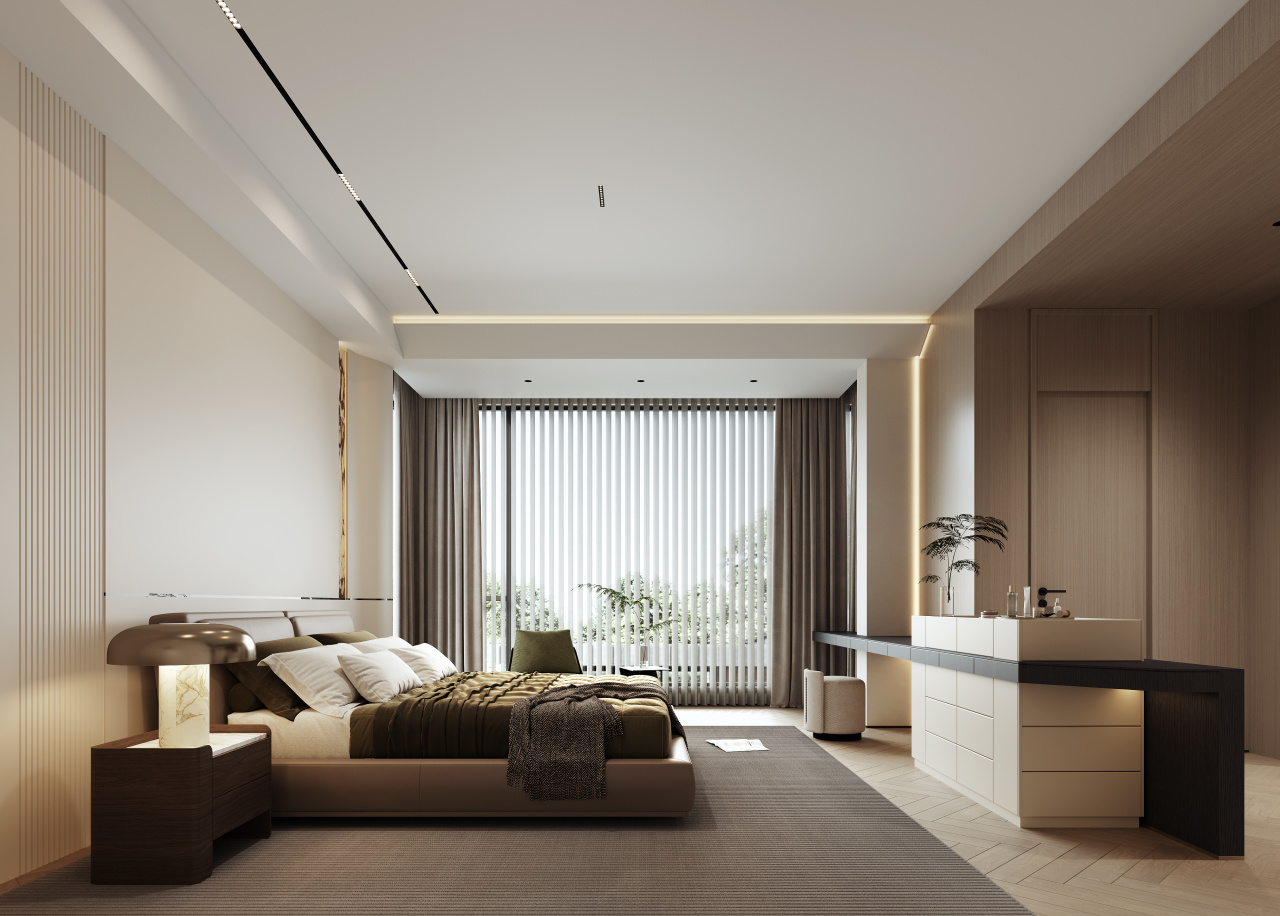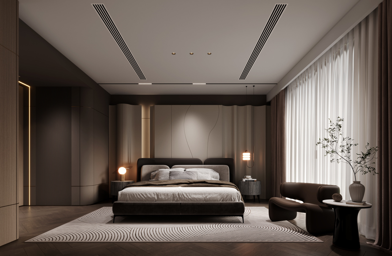 而在美学营造方面,张鑫伟更是独具匠心。她擅长运用色彩的和谐搭配,巧妙营造出空间的独特氛围与情感基调;精心甄选材质,借由质感的巧妙碰撞,赋予空间别具一格的魅力;灵活运用光影变化,为空间增添一份温柔与灵动。她的设计,让美学不再是停留在图纸上的抽象概念,而是真切地融入业主的三餐四季,成为日常可感的美好。她所追求的,绝非仅仅是一座“好看的房子”,而是一个能让业主全身心放松、尽情释放情绪的“有温度的家”。