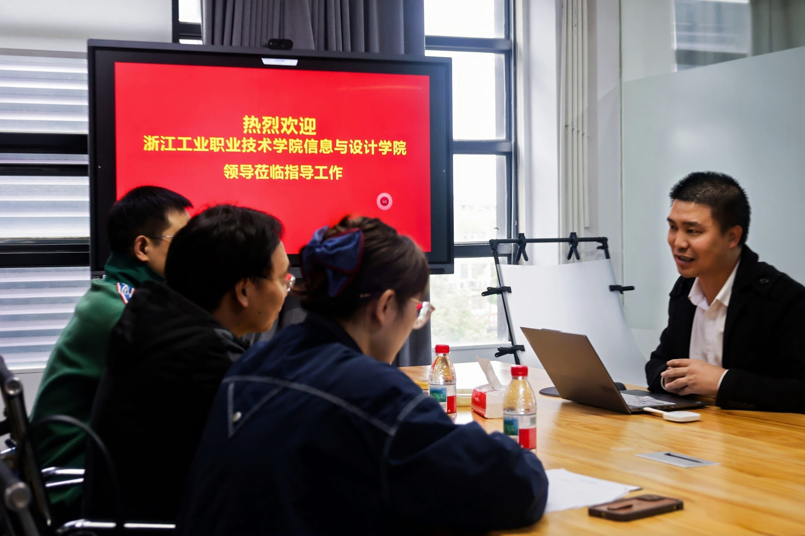 莫兴波总经理对学院一行的到来表示热烈欢迎,并详细介绍了越青社传媒的业务布局、发展愿景及人才需求导向。他表示,传媒行业的快速发展离不开高素质专业人才的支撑,浙江工业职业技术学院培养的人才在专业技能、实践素养上与企业需求高度契合,期待以此次座谈为契机,与学院建立长期稳定的合作关系。通过订单式人才培养、企业导师进校园、项目实战进校园等多元化模式,实现“教学即实践、实践即就业”的良性循环,为企业可持续发展储备核心人才。