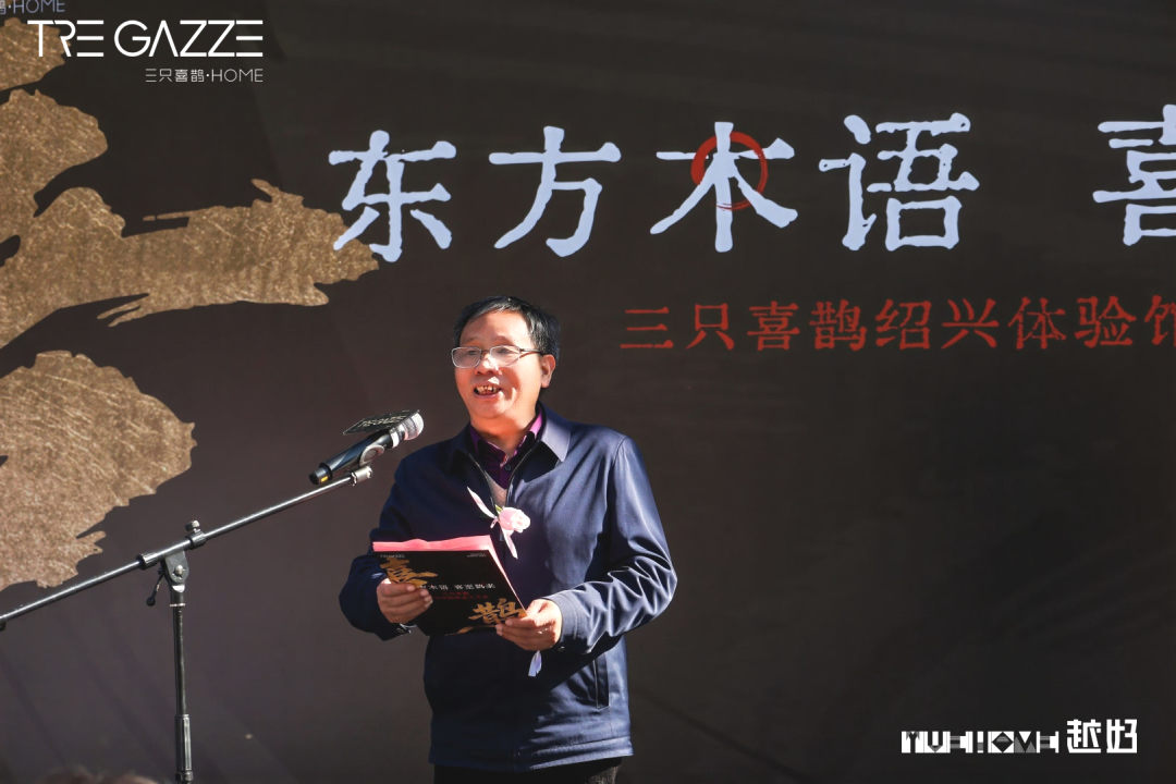 吉时启幕,越好家居总经理陈方明致欢迎辞,讲述三只喜鹊入驻绍兴初心,以“喜鹊筑巢、幸福万家”为愿献高端高定木作;老客户奚美蕉分享居住体验,诠释品牌品质与雅韵传承;三只喜鹊集团副总裁洪巍阐述品牌战略,坚守“精致产品、极致服务”,深耕东方美学;金德隆文创园总经理谢胜林送跨界祝福,期待木作之美赋能绍兴文创与高端家居,让东方雅生活浸润万家。