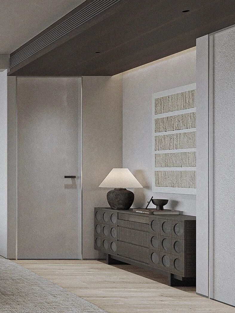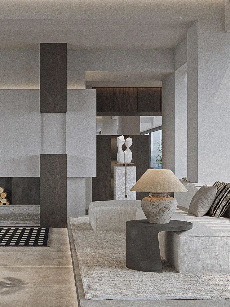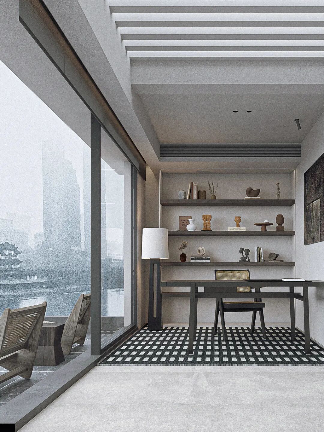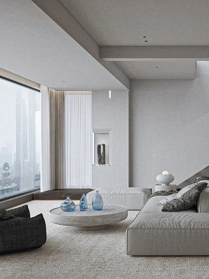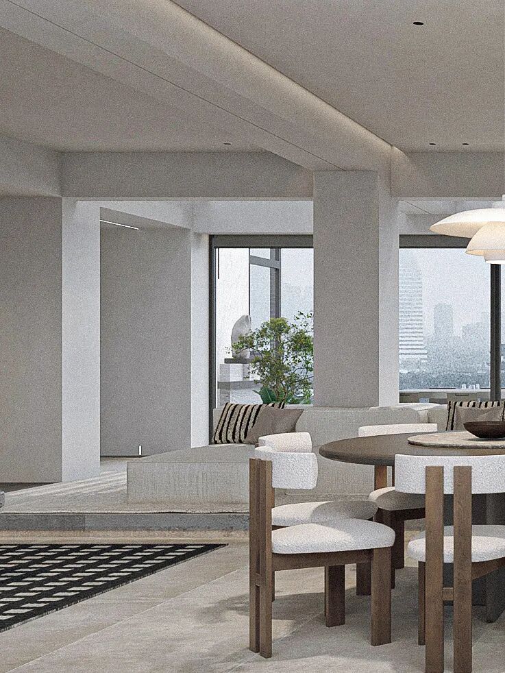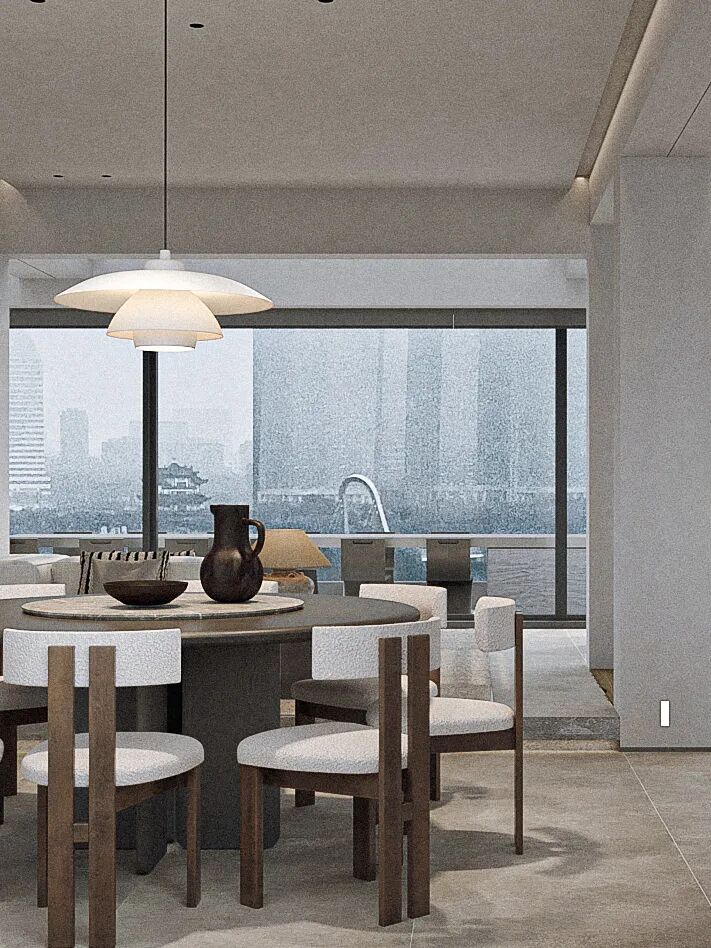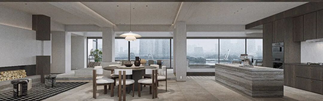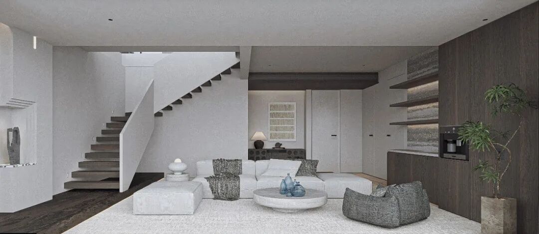 该住宅位于绍兴迪荡湖畔,是绍兴最美的湖景房,该社区拥有豪华的排屋、顶楼跃层和大平层。设计师以抱朴守拙的设计理念,力求打造一个低调、克制、和谐、静谧的空间。