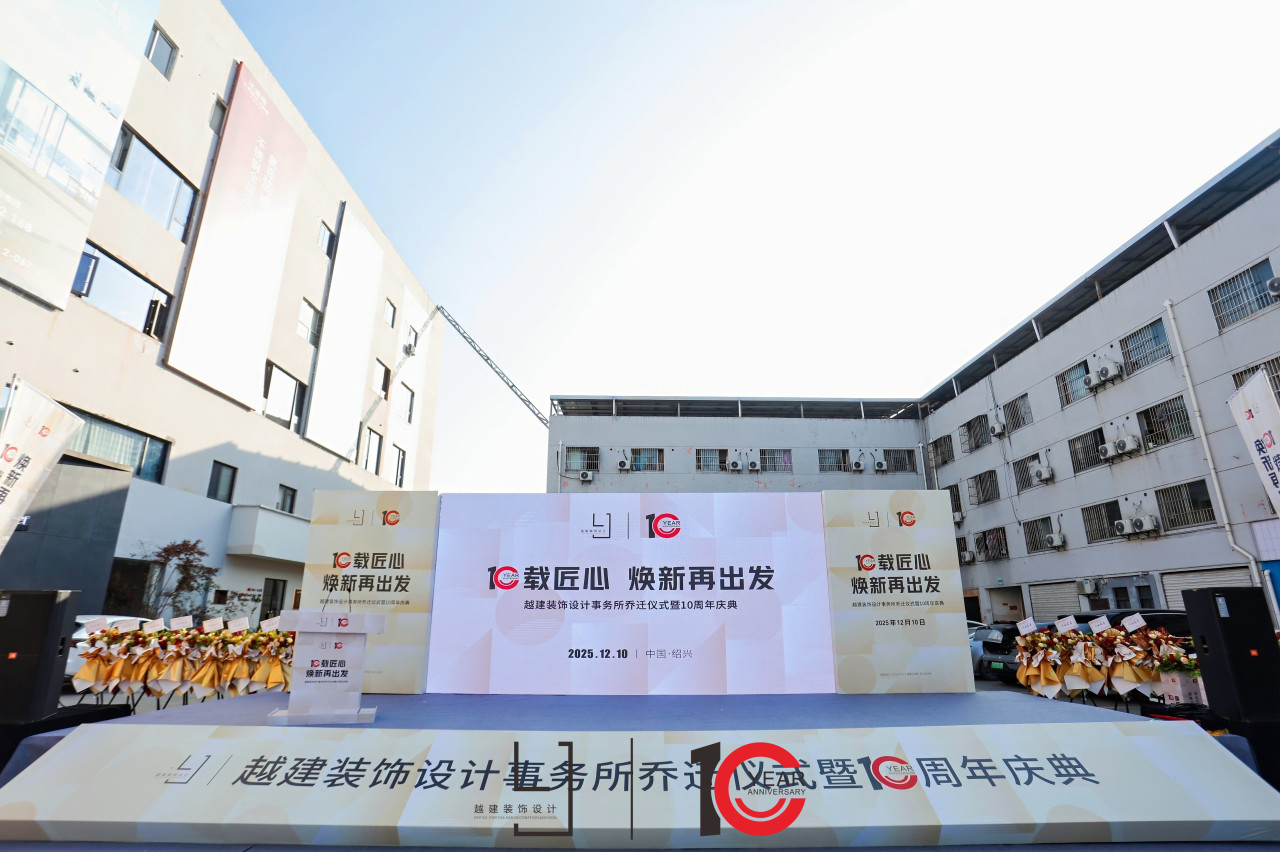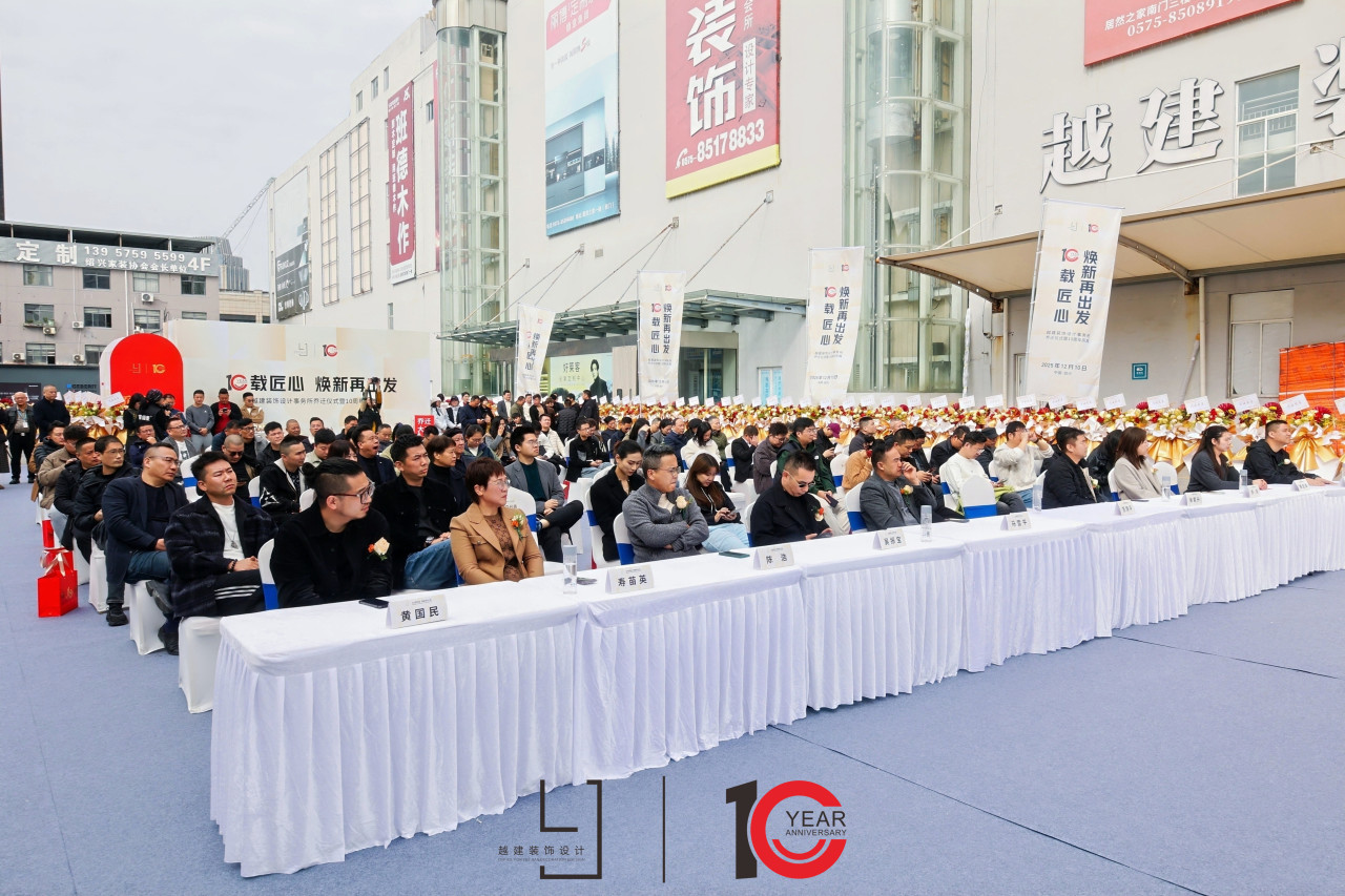12月10日上午,越建装饰设计事务所乔迁仪式暨十周年庆典在绍兴居然之家圆满举行。本次活动以“十载匠心,焕新再出发”为主题,旨在回顾企业十年发展历程,庆祝新址落成,并以崭新的姿态开启下一个十年的征程。