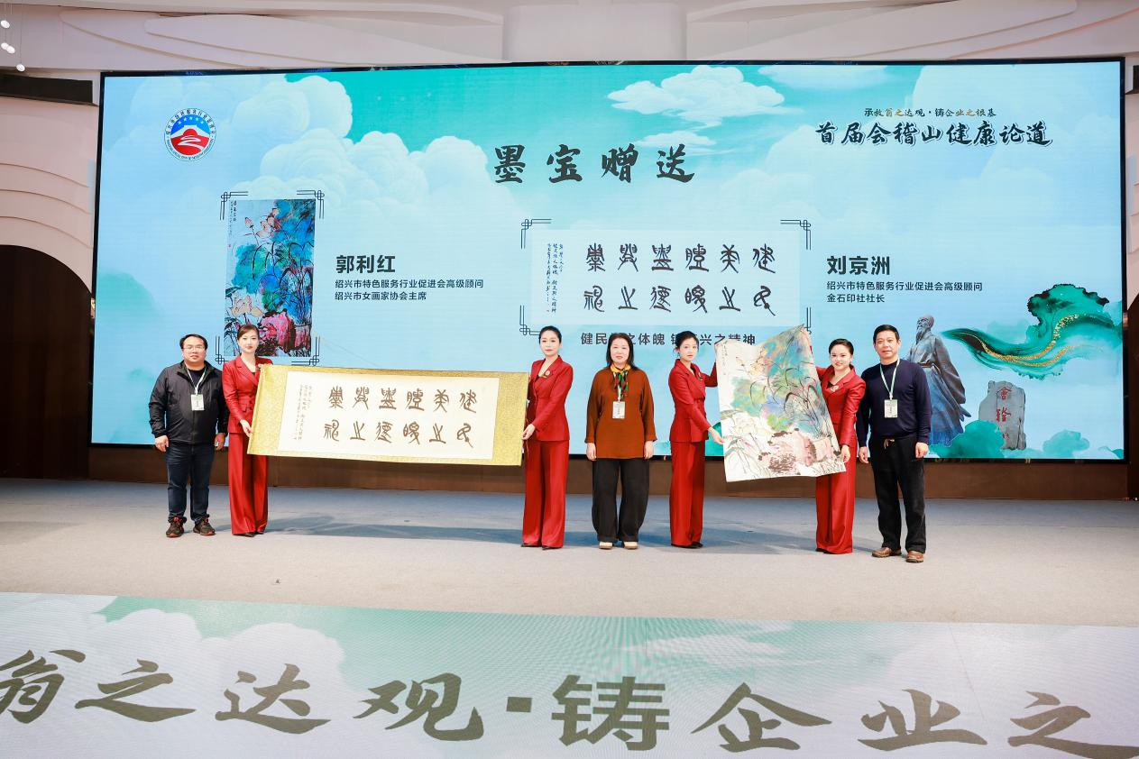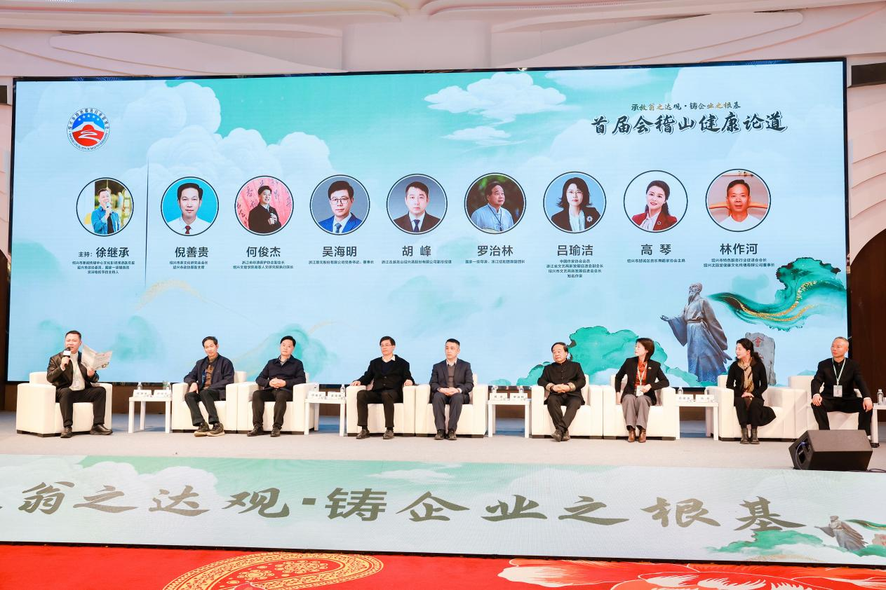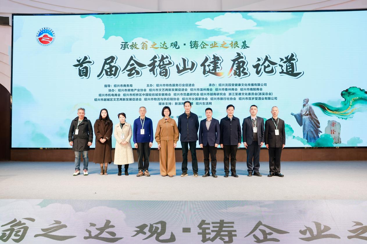 为纪念南宋爱国诗人陆游诞辰900周年,以“山水入企・健康入心 承放翁之达观・铸企业之根基”为主题的首届会稽山健康论道活动,于2025年12月30日下午在绍兴成功举办。在绍兴市商务局指导下,由绍兴市特色服务行业促进会主办,绍兴沈园堂健康文化传播有限公司承办,并联合了绍兴市房地产业协会、绍兴市文艺两新发展促进会、绍兴市温州商会、绍兴市衢州商会、绍兴市南阳商会、绍兴市机电商会、绍兴市柯桥区中国轻纺城安徽商会、绍兴市范蠡研究会、绍兴市越商研究会、浙江至德文化委员会(浙吴总会)、绍兴市越城区文艺两新发展促进会、绍兴市物流与供应链协会、绍兴市女画家协会、绍兴市旅行社协会、绍兴市百岁堂酒业有限公司等十余家商协会及文化研究机构共同协办,吸引了政府领导、医疗专家、文化学者及企业家代表等450余人线下齐聚一堂,共话健康,同时线上50万+观众通过新浪新闻直播间观看论道。