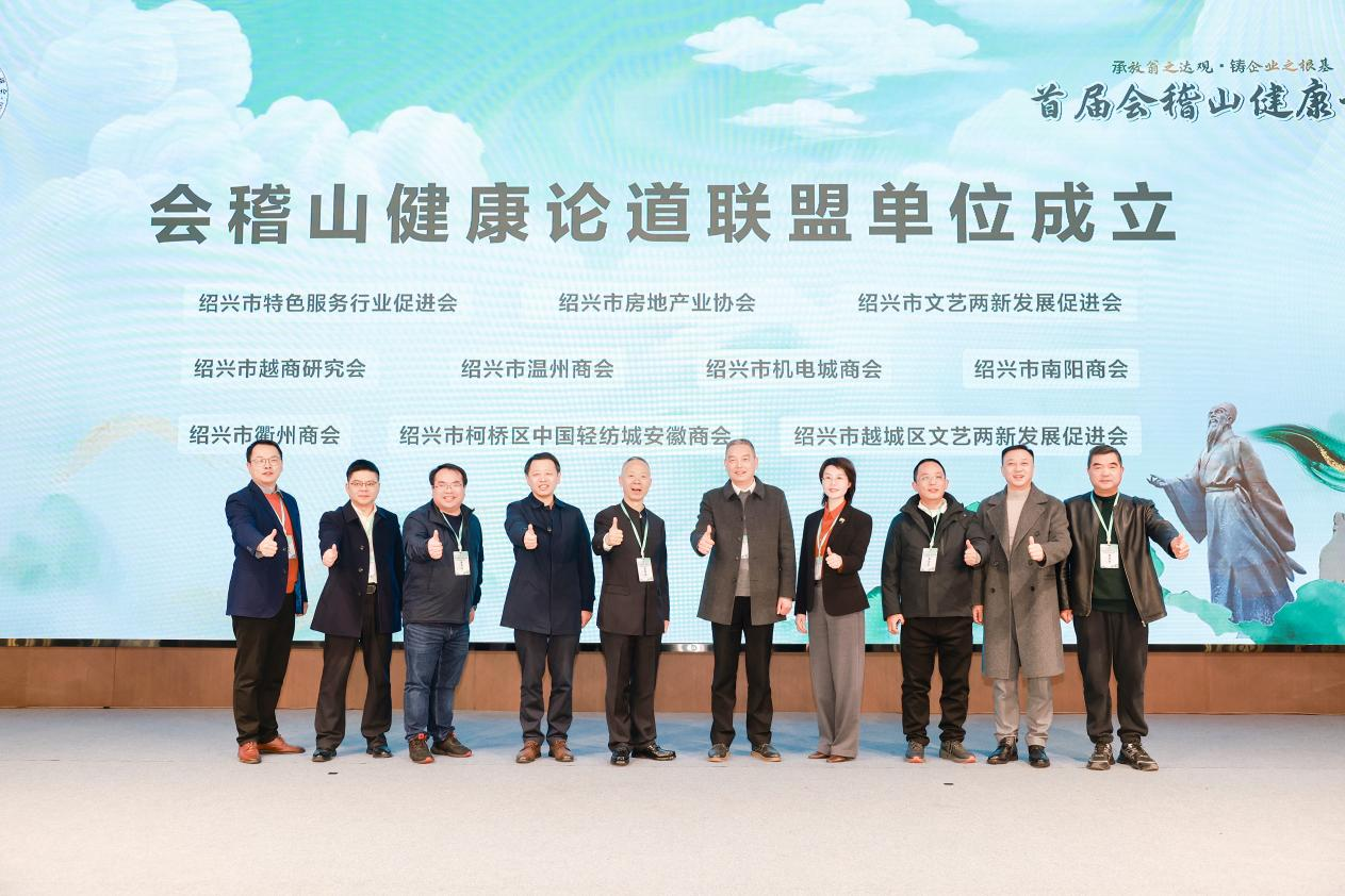 同时,绍兴市特色服务行业促进会联合绍兴市房地产业协会、绍兴市文艺两新发展促进会、绍兴市越商研究会、绍兴市温州商会、绍兴市机电商会、绍兴市南阳商会、绍兴市衢州商会会长、绍兴市柯桥区中国轻纺城安徽商会、绍兴市越城区文艺两新发展促进会发起成立“会稽山健康论道联盟单位”,将整合各界资源,凝聚健康共识,推动健康产业协同发展。