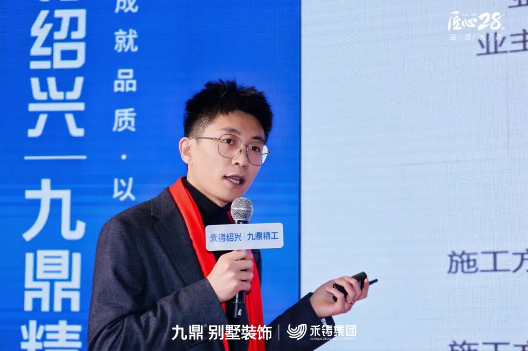 绍兴市家居装饰装修行业协会秘书长邵东海在讲话中,充分肯定九鼎发布精工体系的行业意义。他表示,该体系为绍兴家装行业树立了全新的价值标杆,推动行业从“价格竞争”走向“价值竞争”,并响应了消费者对“安心托付”的根本诉求。