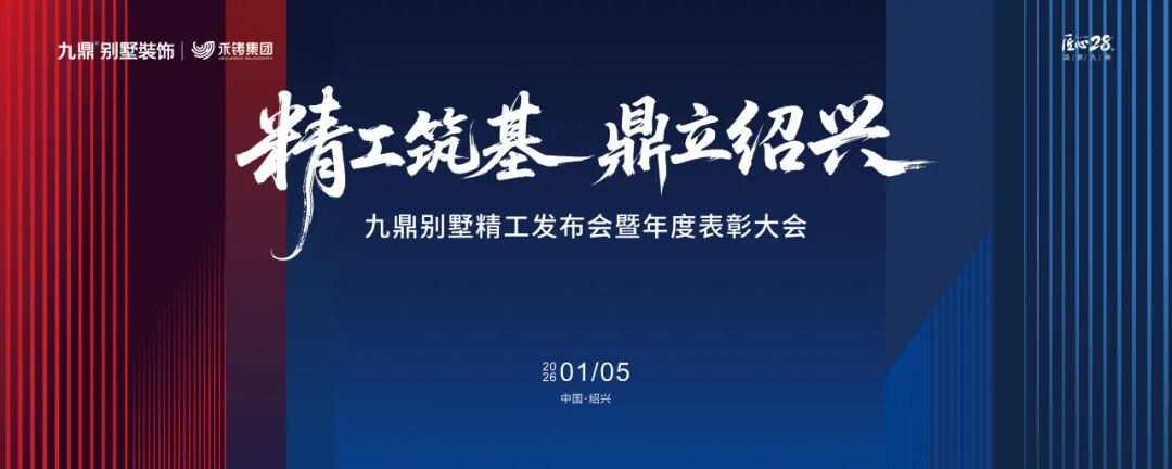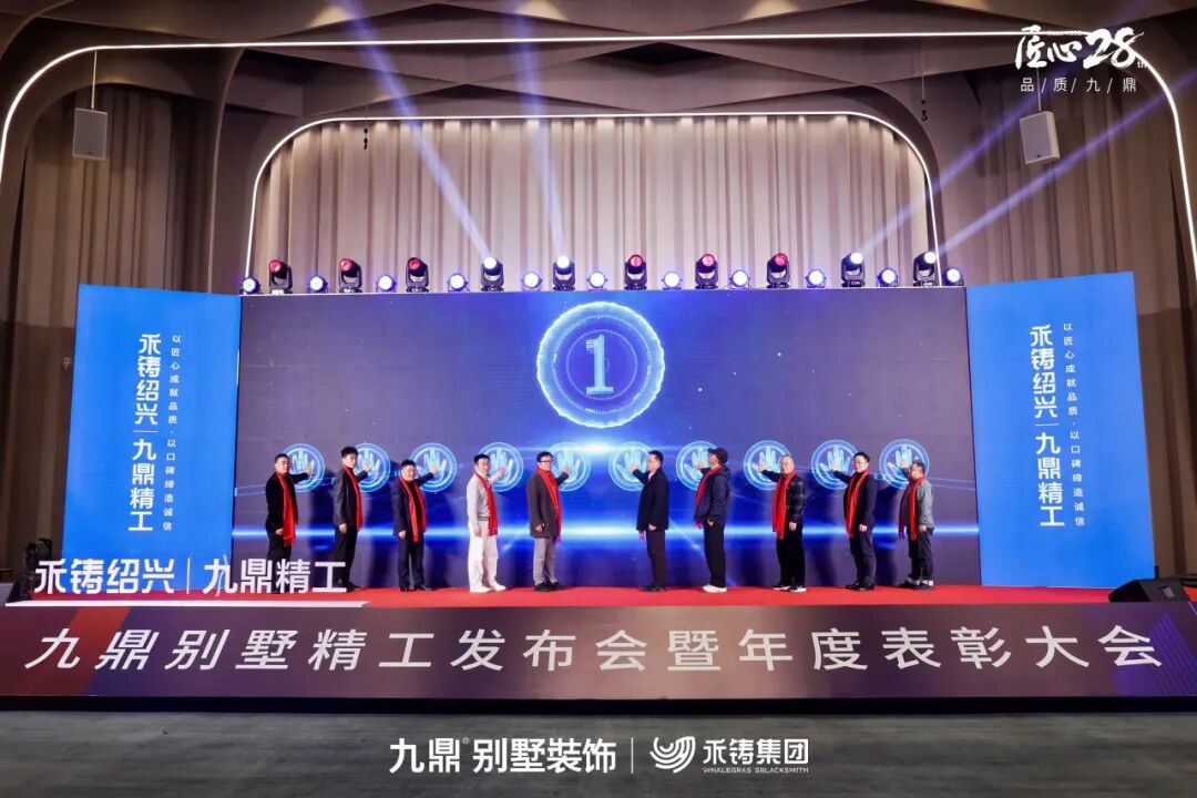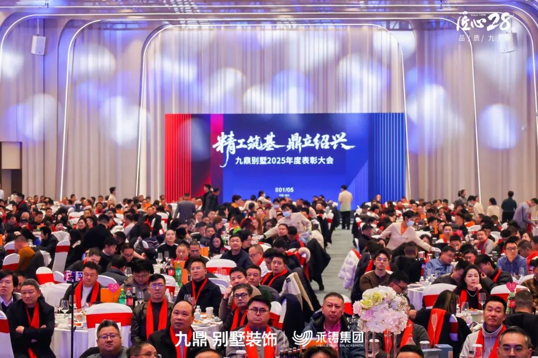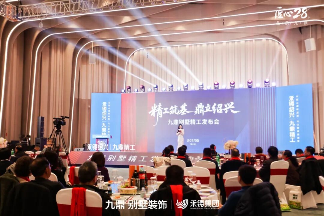 1月5日 ,为深度践行匠心精神,系统发布全新别墅精工标准,并隆重表彰过去一年中涌现出的优秀合作伙伴与先进个人,“精工筑基·鼎立绍兴——绍兴九鼎别墅精工发布会暨年度表彰大会”在绍兴隆重举行。本次活动既是一场面向未来的产品与体系宣言,也是一次凝聚人心、共享荣耀的家庭盛会,标志着九鼎装饰在品质追求与品牌发展的道路上迈出了坚实一步。