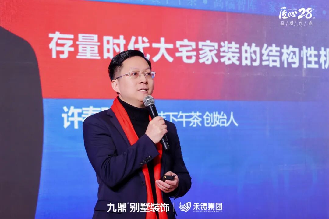 家装下午茶创始人许春阳以《存量时代大宅家装的结构性机会》为题,深入剖析了当前市场环境。他指出,在存量竞争时代,客户需求正向个性化、高品质、重服务转变,这为像九鼎这样具备系统交付能力的企业带来了核心机遇,而“精工”正是抓住这一机遇的关键抓手。