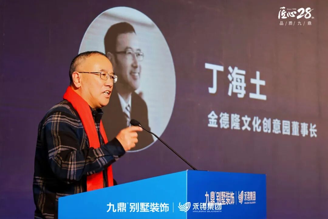 金德隆文创园创始人丁海土在讲话中,从文化与空间融合的独特视角出发。认为真正的家居空间应是能安顿身心、历久弥新的“作品”,精工体系以系统性投入对抗时间耗损,让家在时光中增值,这与城市文化场景营造的理念高度同频。