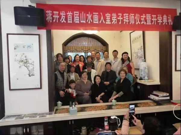 天高气爽,丹桂飘香,正是金秋好时光。10月17日下午我随高经理、郑经理和王总等朋友早早地从绍兴赶到位于杭州文二路的金成花园教学点。下午二点半蒋开发教授首届山水画弟子班拜师仪式暨开学典礼正式举行。前来参