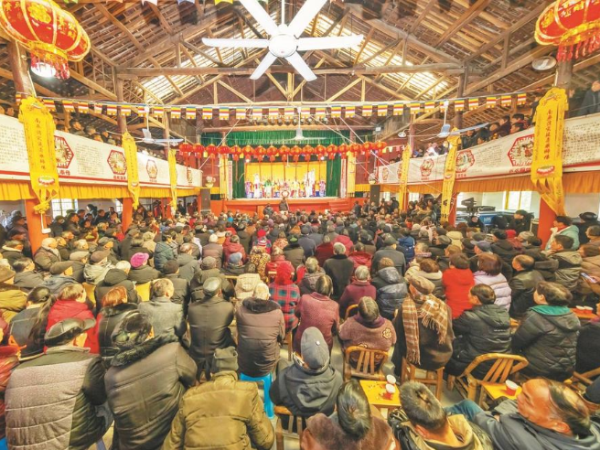 2月10日,浙江绍剧艺术研究院的演职人员来到嵊州市三界镇蒋镇村,送上了一场精彩的折子戏《三请樊梨花》,与村民共迎元宵佳节。台上,演员们的表演或高亢激昂,或婉转低回。台下,观众的掌声、喝彩声此起彼伏。