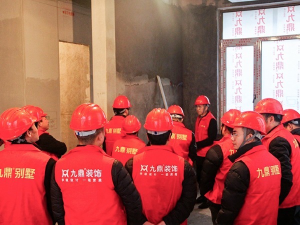 2025年2月20日快讯:为持续提升工程施工质量与管理水平,2月20日下午,绍兴九鼎装饰工程部经理楼朝仪组织全体项目经理,于镜庐排屋项目工地召开“精益施工·品质赋能”主题现场培训会。此次会议通过实地观