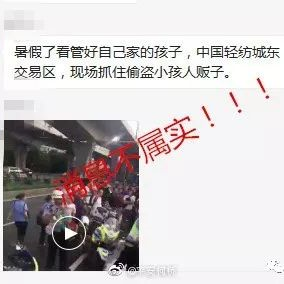 7月7日起有人在微信群、朋友圈转发“中国轻纺城东交易区现场抓获人贩子”7月8日下午柯桥警方回应:虽有图有视频但经调查消息不属实柯桥公安表示:7月7日开始,有人在朋友圈转发市场内抓住偷盗小孩的人贩子,虽