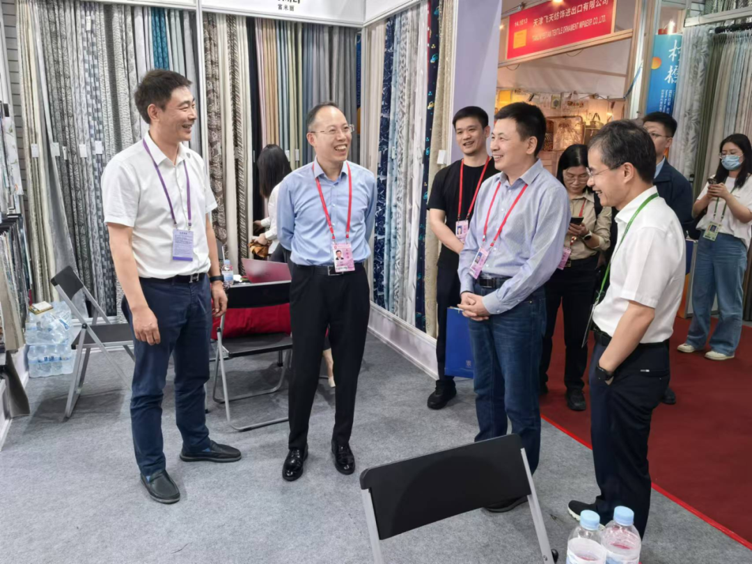 11月1日下午,绍兴市副市长孙君带队赴第136届广交会三期现场看望绍兴参展企业。市商务局党委书记、局长金立耿,市商务局总经济师吕寒平陪同调研。滑动查看下一张图片孙君先后走访了小轩窗居室、富米丽家纺、诗