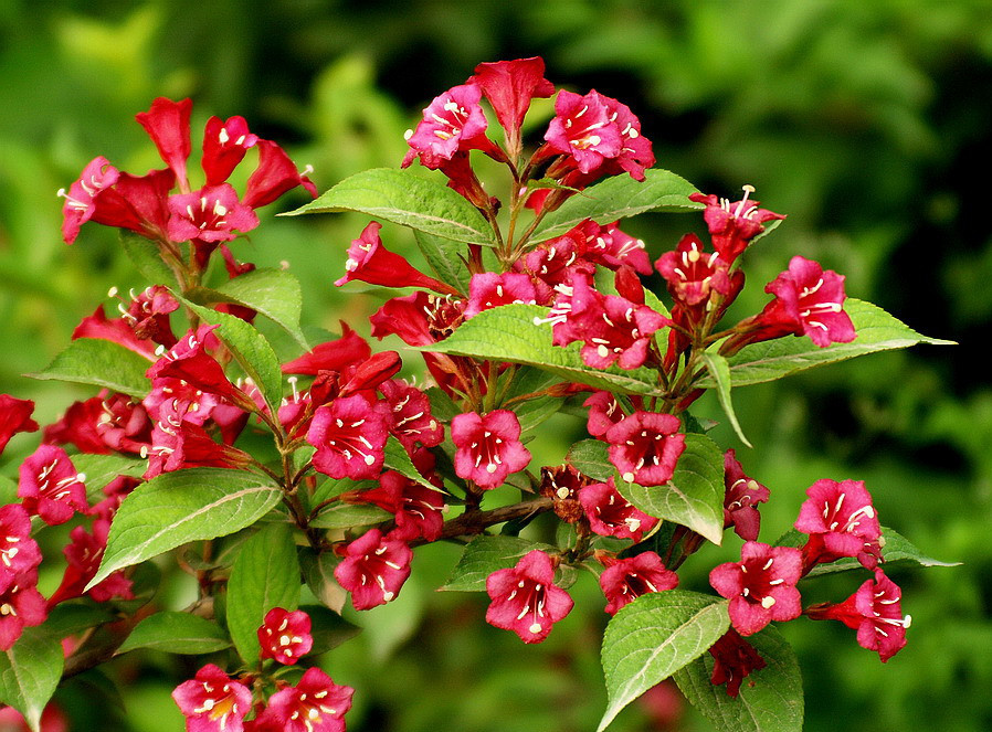 锦带花别名:锦带、五色海棠、山脂麻、海仙花学名:/简介忍冬科锦带花科灌木。分布于中国黑龙江、吉林、辽宁、内蒙古、山西、陕西、河南、山东北部、江苏北部等地。生于海拔100-1450米的杂木林下或山顶灌木