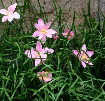 韭莲简介别名:红玉帘、菖蒲莲、风雨花、风雨兰学名:ZephyranthesgrandifloraLindl分布区域:韭莲原产中美、南美洲,移植于热带、亚热带地区。石蒜科葱莲属多年生草本植物,丛生。植株