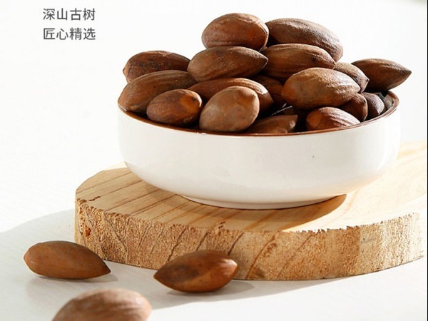 香榧是一种坚果,呈橄榄形或梭形,基部有两只对称榧眼,外壳薄、棕褐色或棕黄色、棱纹浅而光滑;内种皮黑色易脱;种仁饱满,色泽金黄;肉质香酥爽口,回味鲜浓。香榧含有丰富的油脂、蛋白质、氨基酸、矿物元素和多种维生素。