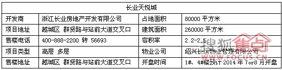 看房之前,小编照常在绍兴搜狐焦点网上查询了有关长业天悦城的基本资料。