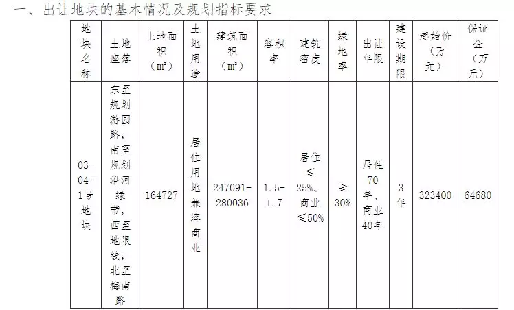 出让公告显示,2019年6月27日上午9时00分,将以网上拍卖方式公开出让03-04-1号地块国有建设用地使用权。